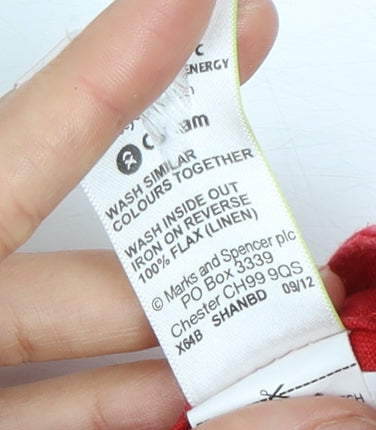 Explore the timeless style of these Marks and Spencer women's trousers, tailored to enhance your wardrobe with a sophisticated touch. Crafted from 100% linen, these trousers are designed for comfort and breathability, ensuring you stay cool and relaxed in any setting. Coloured in a rich red hue, they bring vibrancy to your outfit, making them perfect for any occasion, whether casual or slightly more formal. Their relaxed fit along with the flat front and button closure offers a sleek, flattering silhouette that can be effortlessly matched with a variety of tops. Ideal for women who appreciate comfort alongside chic style, these trousers will be a versatile addition to your collection. Pair them with a blouse for office wear or a simple tee and sandals for a laid-back look. Machine washable for easy care, they demand minimal effort, fitting seamlessly into your daily routine. Though gently worn, they maintain excellent condition, reflecting only slight natural wrinkling indicative of the linen material. Priced at an accessible range, they offer affordable luxury, positioning themselves as a staple garment for seasons to come. Look effortlessly stylish and elegant with these essential red linen trousers from Marks and Spencer.