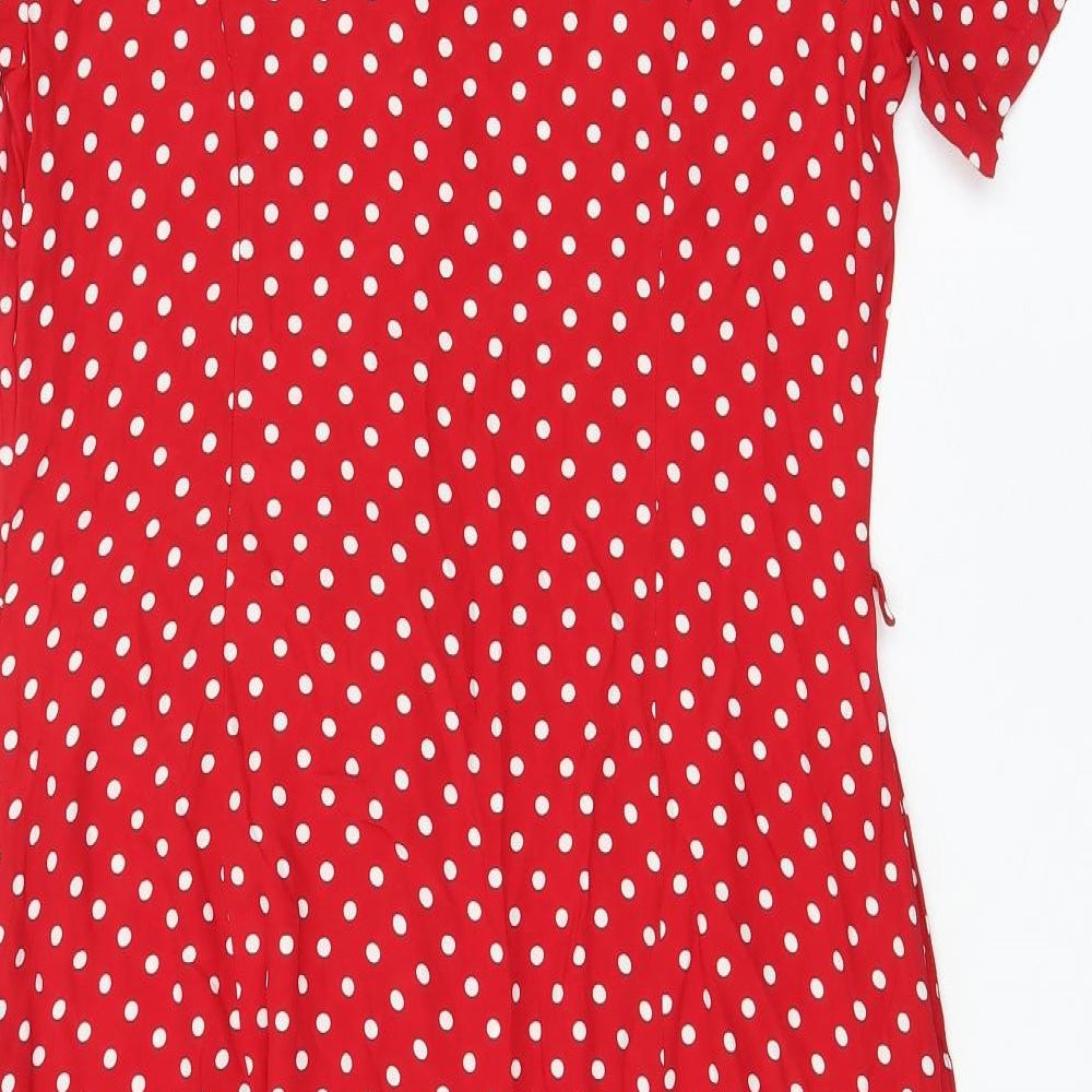Womens Red Polka Dot Viscose A-Line Size 14 Collared Button - Pockets