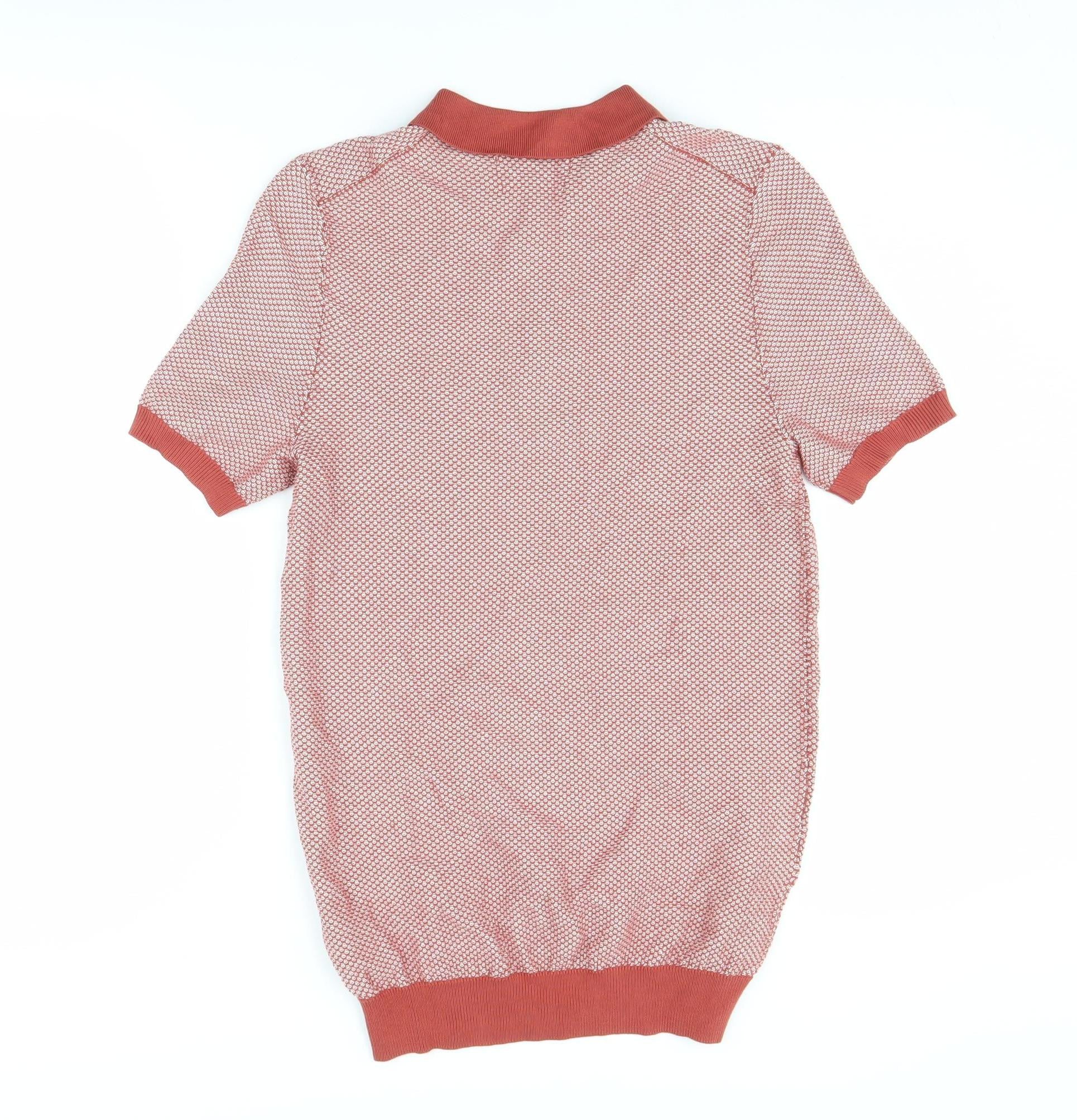 This Marks and Spencer Women's Polo Shirt in a striking red hue is a versatile addition to any wardrobe. Perfect for spring and summer, this classic piece features a comfortable short sleeve and a collared neckline, making it ideal for casual outings. Tailored in a flattering XS size, it offers a regular fit that complements a variety of body types. Crafted from a quality cotton-modal blend, this knit fabric ensures durability and breathability. Despite being in excellent condition, there are no original tags, indicating light wear. Enjoy the simplicity of a button closure that elevates its classic style. Priced at an attractive £12.00, it’s a chic choice for everyday casual wear that effortlessly aligns with a regular wardrobe. Machine washable and easy to maintain, this polo combines convenience with style. Grab this elegant, yet subtle piece to enhance your collection today!