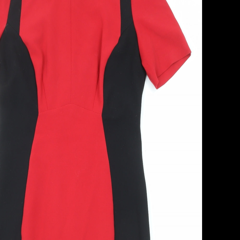 Womens Red Polyester Shift Size 10 Round Neck Zip