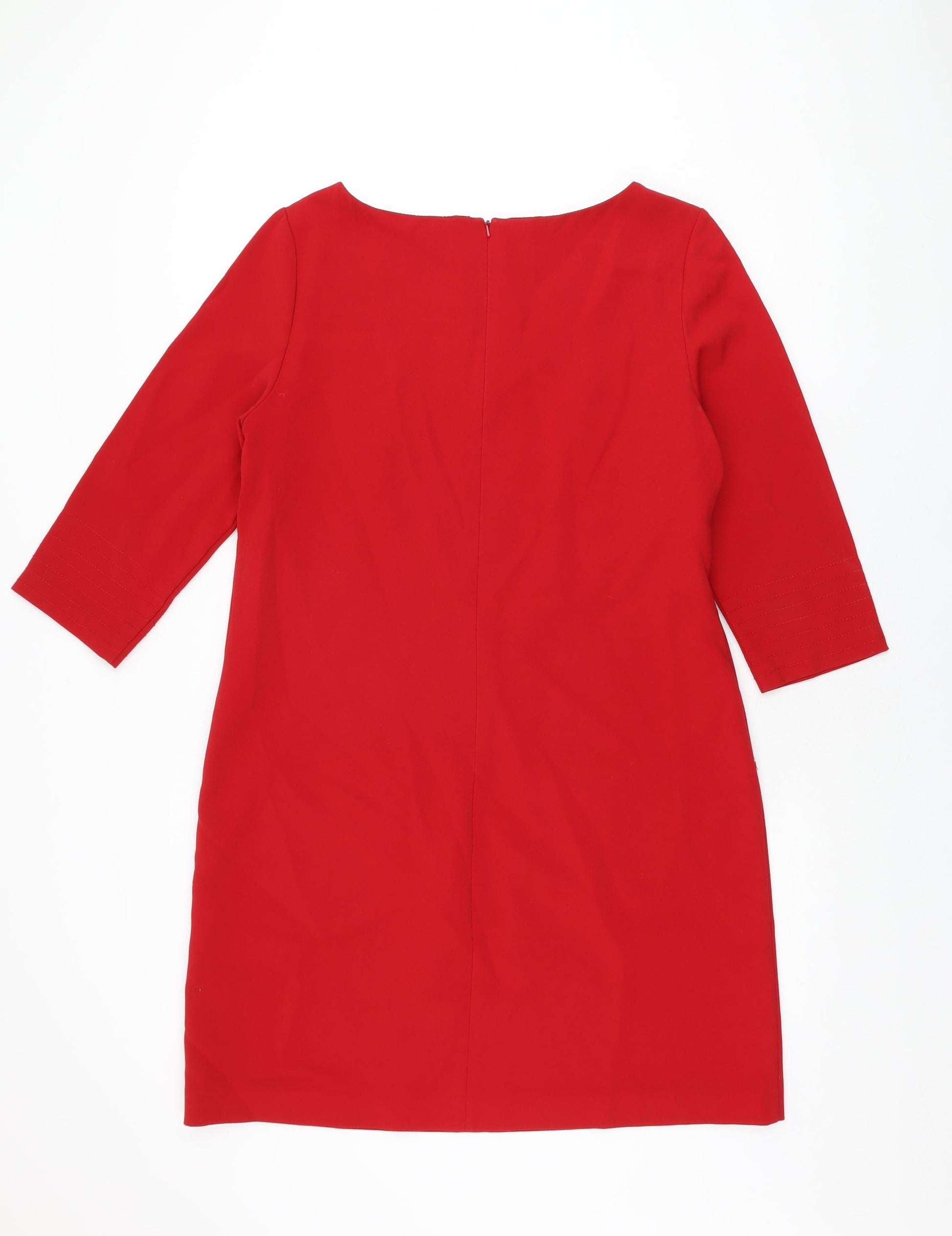 Womens Red Polyester Shift Size 14 Boat Neck Zip