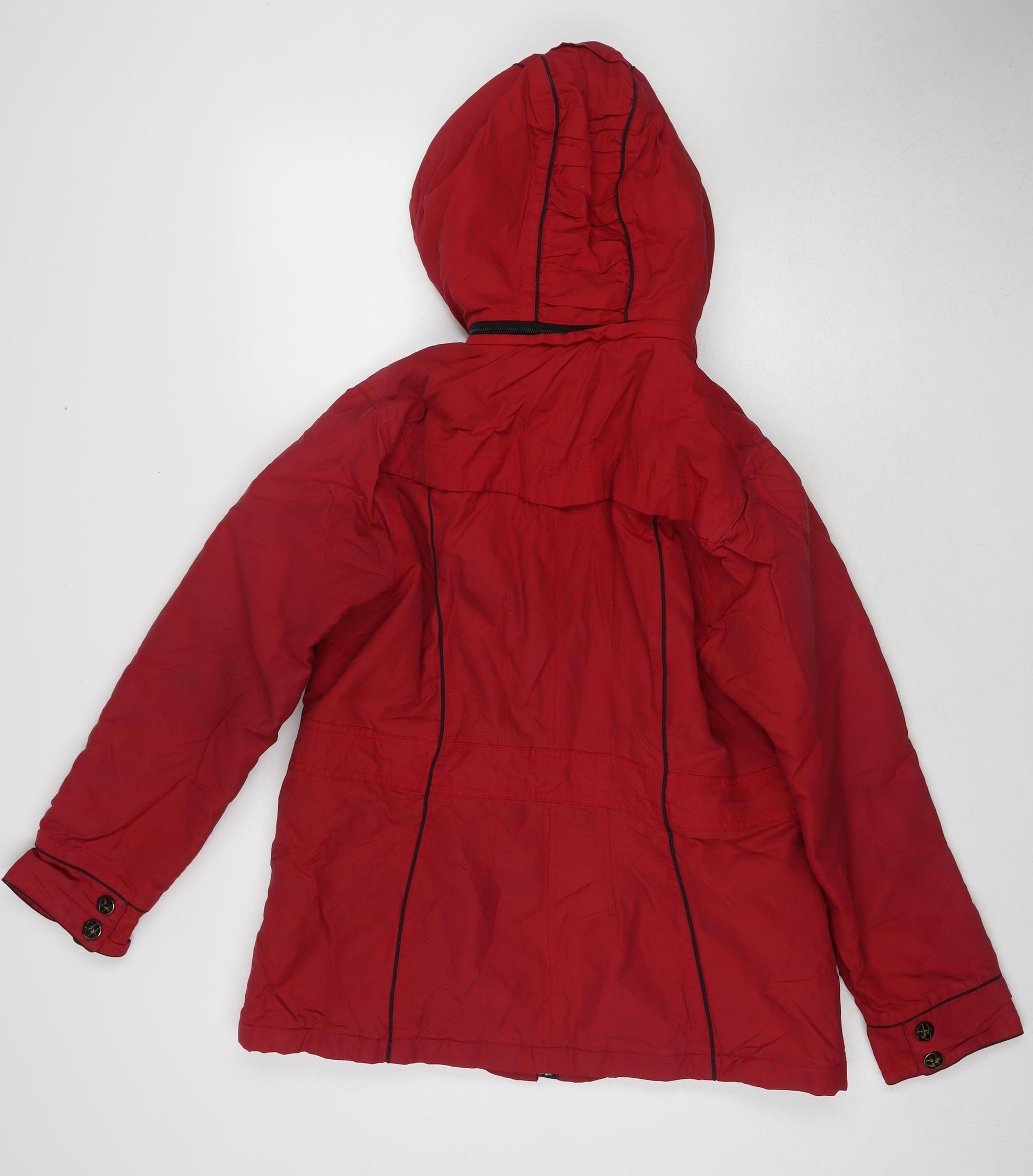 Experience everyday comfort and style with this Marks and Spencer Women's Red Rain Coat, designed for those who cherish both fashion and functionality. Perfectly tailored in a regular fit, this mid-length jacket is a must-have addition to your autumn and winter wardrobe. Crafted from durable polyamide and polyester materials, it ensures you stay protected against the elements while looking chic and sophisticated. Featuring a bold red colour, the jacket is ideal for adding a splash of vibrancy to your outfit, making you stand out in any crowd. The design includes practical features that amplify convenience, such as a reliable button closure and a hood for added weather protection. This elegant rain coat is machine washable, maintaining its pristine condition with ease, making it both stylish and low-maintenance. Whether you're heading out for a casual day at work or a weekend outing, this jacket's understated but classic style makes it adaptable for various occasions. Although gently worn, it remains in excellent condition with no noticeable defects, offering exceptional value and longevity. Don't miss the chance to own this versatile piece that combines quality craftsmanship with contemporary design, ensuring you step out confidently no matter the weather conditions.