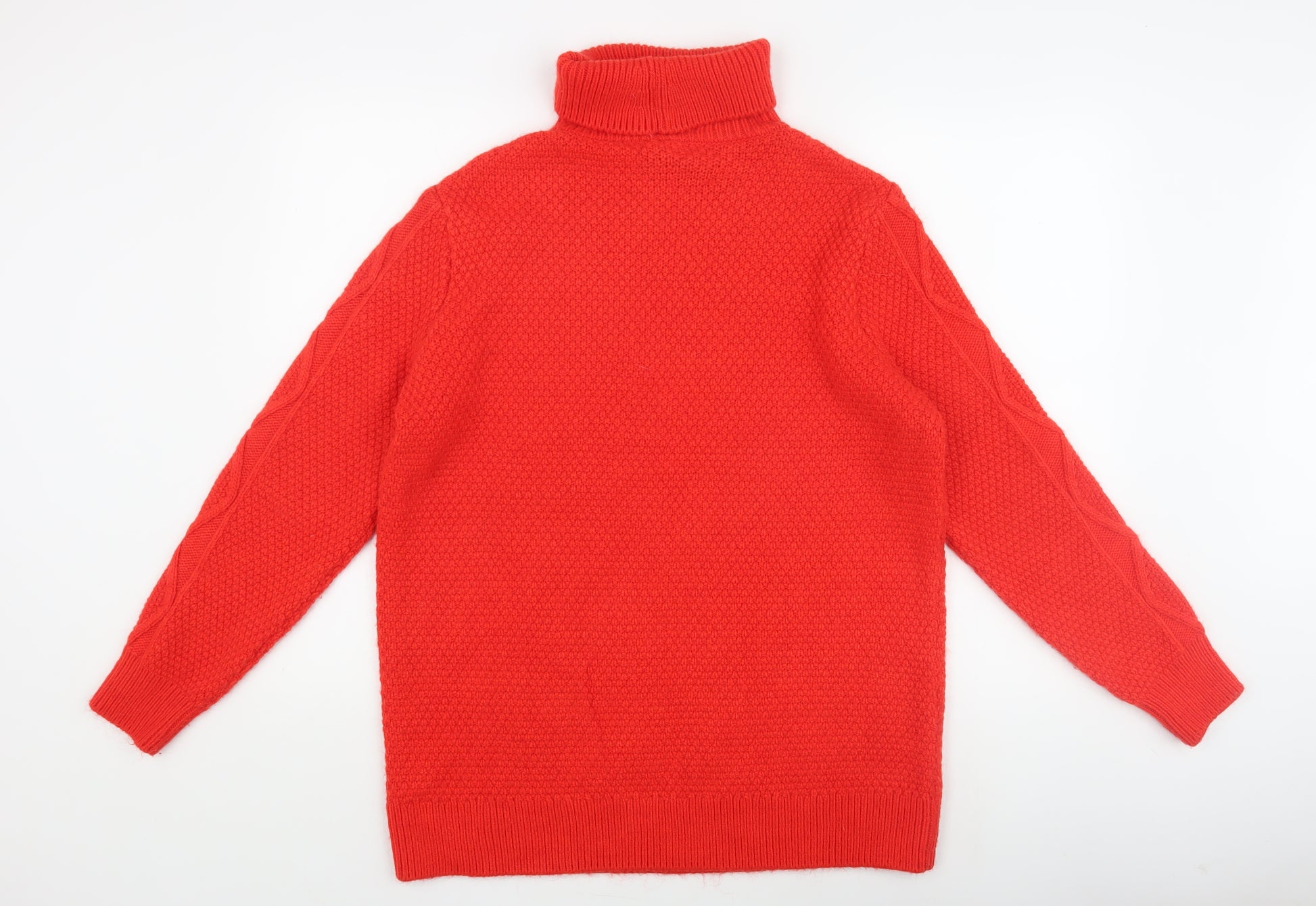 Enhance your winter wardrobe with this striking red roll neck jumper from Marks and Spencer, designed for women who love both style and comfort. This medium-sized pullover is perfect for the autumn and winter seasons, offering a heavyweight knit that ensures warmth and coziness. Crafted from a quality blend of acrylic, polyamide, and polyester, it delivers a soft touch and long-lasting wear. Featuring a classic cable-knit pattern, this jumper not only provides great texture but also adds a refined touch to your casual outfits. The regular fit and long sleeves make it a versatile piece that pairs well with jeans or skirts for a chic, laid-back look. Easy to care for, it's machine washable, making it a practical addition to your everyday attire. Whether you're heading out for a casual day with friends or enjoying a cozy night in, this jumper is sure to keep you stylishly snug.