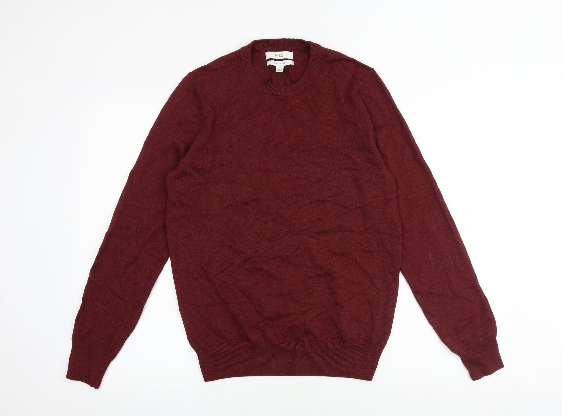 Womens Red Round Neck 100% Cotton Pullover Jumper Size S