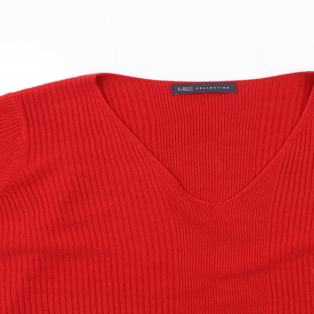 Womens Red V-Neck Acrylic Pullover Jumper Size 20