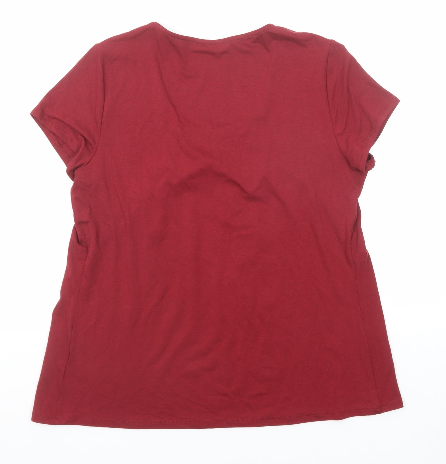 Womens Red Viscose Basic T-Shirt Size 14 Scoop Neck