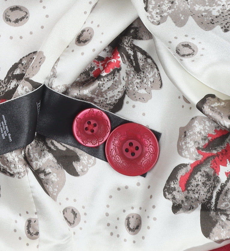 Elevate your wardrobe with this stylish red wool pea coat from Marks and Spencer's Per Una collection, available in size 16. This mid-length coat features a classic red hue, perfect for adding a pop of colour to your cold-weather ensemble. The coat is designed with elegant bow accents and buttons, providing a charming and sophisticated look. Constructed from a warm wool outer shell, it's ideal for keeping you cosy during the autumn and winter seasons. The coat includes a lovely polyester lining, ensuring comfort and smoothness against the skin while maintaining the coat's beautiful drape. Its regular fit and long sleeves make it a practical and fashionable choice for various occasions, from casual outings to more formal events. The button closure adds a traditional touch, while the timeless pea coat style ensures you'll stay in vogue. With its classic design and quality materials, this coat is a must-have addition to any woman's wardrobe. Step out in style this season with this versatile, high-quality outerwear piece that promises both warmth and flair.