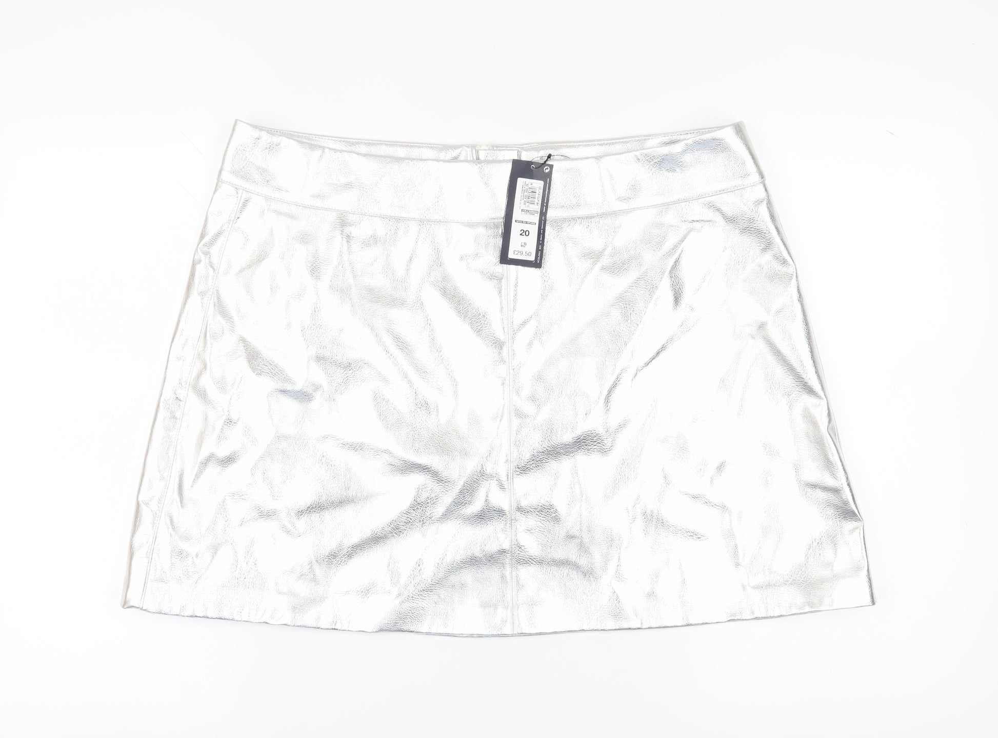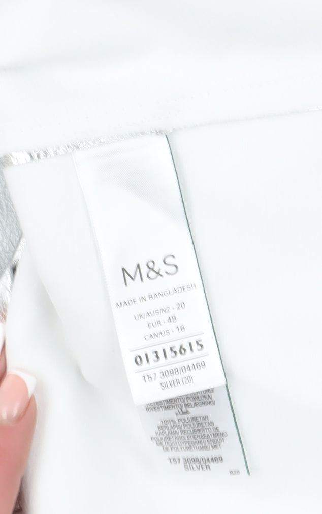 Elevate your party wardrobe with this striking silver pencil skirt from Marks and Spencer. Perfect for a cocktail evening or a fun night out, this skirt promises a blend of style and comfort. Designed for women, the skirt's sleek silhouette flatters the figure and complements a variety of tops. Crafted from high-quality polyester with a polyurethane coating, it features a mid-rise waist for added comfort. This short-length skirt makes a bold statement with its lustrous finish and is ideal for all seasons. Easy care instructions ensure it's machine washable, making it a practical addition to your closet. Secure with a convenient zip closure, this straight and pencil style skirt is a versatile piece that's destined to be a favourite. Its minimalist design is void of patterns and unnecessary accents, emphasizing its clean, modern look. Whether dressing up for a business meeting or an evening event, this skirt provides the perfect touch of sophistication and flair. Discover the perfect blend of comfort and style with this Marks and Spencer creation.