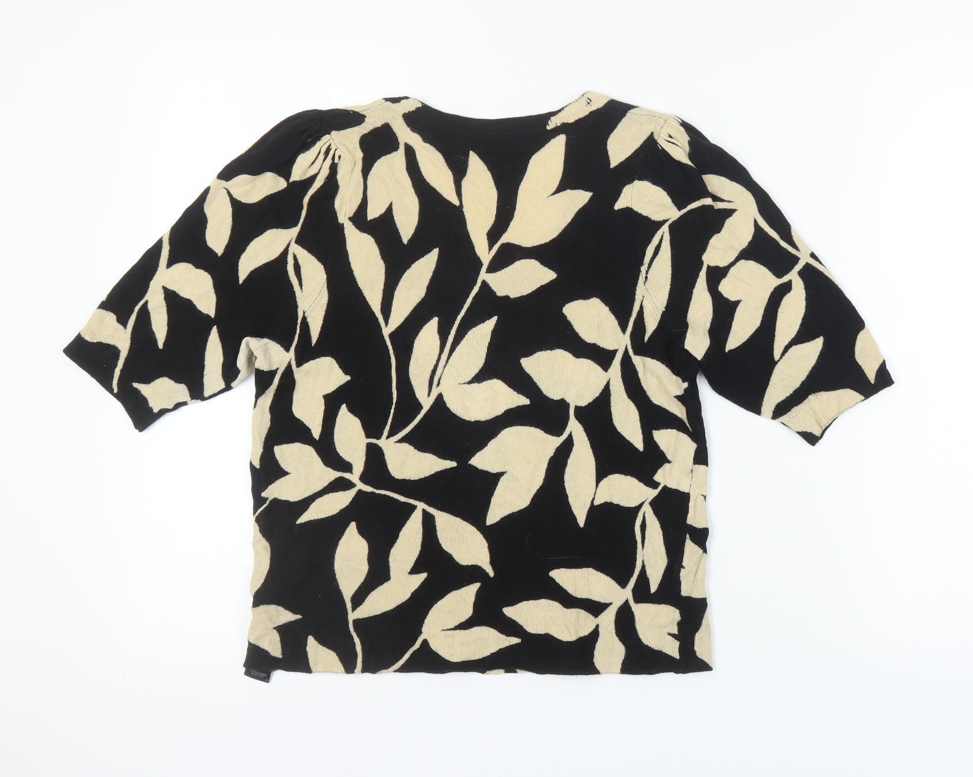 Women's Size 10 Black Floral 3/4 Sleeve Jumper Blouse Top