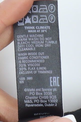 Elevate your wardrobe with this elegant women's top from Marks and Spencer. Designed in a classic black with a charming floral pattern, this piece is perfect for adding a touch of sophistication to any outfit. The luxurious blend of 70% viscose and 30% linen offers a comfortable and breathable wear, making it ideal for a range of occasions, whether casual or a bit more dressed up. Featuring a flattering V-neckline and 3/4 sleeves, this top promises a relaxed fit without compromising on style. Easy to care for and machine washable, this top brings both convenience and chic elegance. Pair it with your favourite jeans or a smart skirt for an effortlessly chic look. Its condition is excellent, showing no visible defects, ensuring you get quality and style in one. Perfect for those who appreciate a classic and timeless aesthetic.