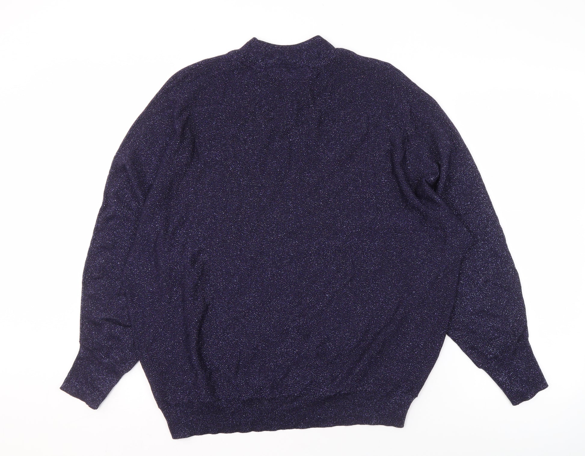 Add a touch of sparkle to your wardrobe with this beautifully crafted Marks and Spencer high neck jumper in a stunning blue hue. Designed for women, this jumper offers comfort and style, perfect for casual outings or adding a hint of elegance to your everyday attire. Made from a blend of viscose, polyester, polyamide, and metallised fibres, it ensures a gentle and soft touch against the skin. Featuring long sleeves and a classic high neckline, this jumper is perfect for cooler autumn and winter days. The lack of pattern provides versatility, allowing it to be paired effortlessly with jeans or skirts for a chic, layered look. This piece is in excellent condition, showcasing brand new quality without tags, ensuring that you stand out with a polished and refined appearance. Easy to care for, the jumper is machine washable, offering convenience and lasting wear. Whether heading out for a casual gathering or simply desiring an elegant, everyday ensemble, this jumper is the perfect addition, combining warmth, style, and a subtle shimmer to elevate your fashion sense.