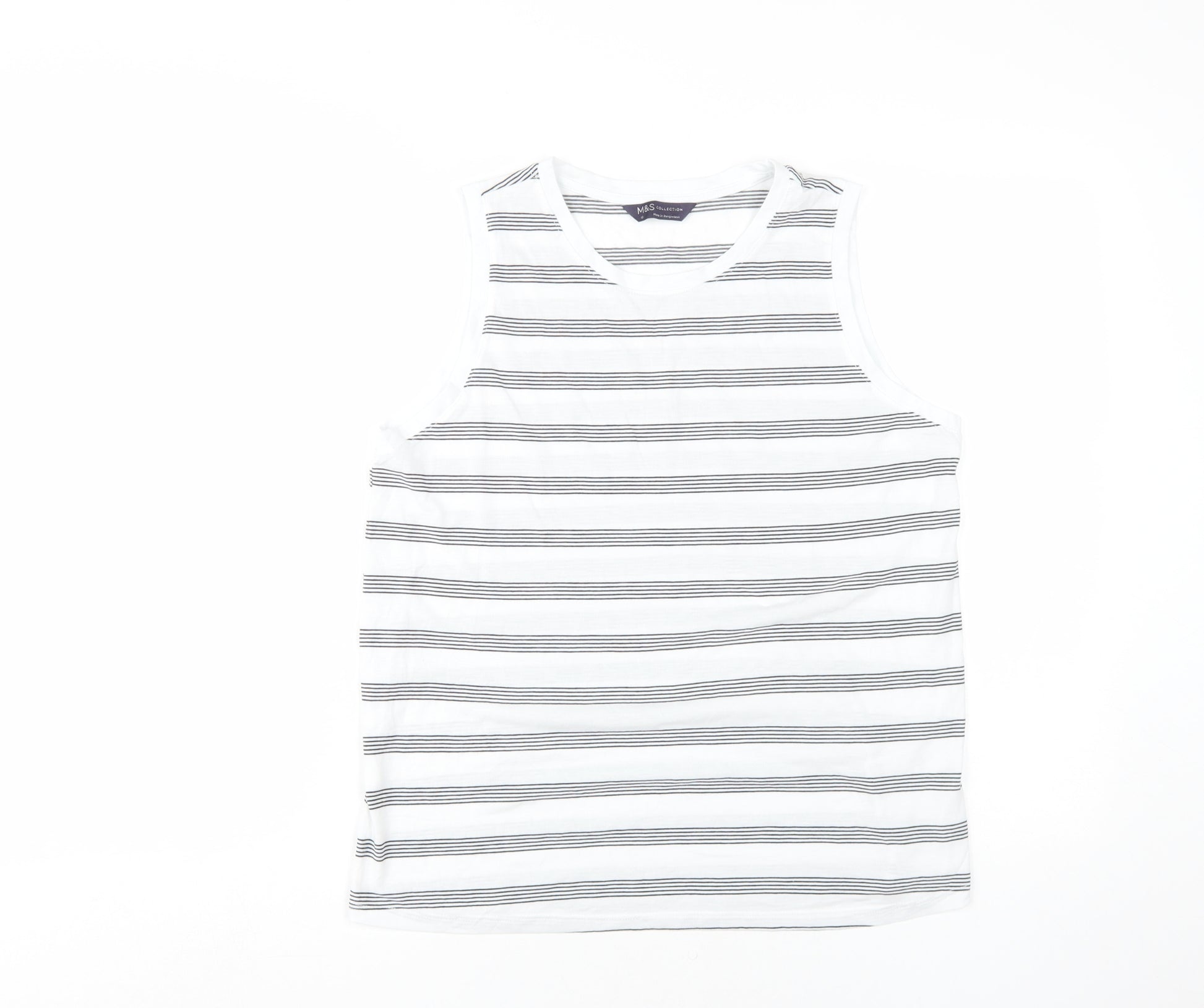 Breathe fresh life into your wardrobe with this charming Marks and Spencer striped tank top, perfect for casual outings or relaxing at home. Crafted with a blend of polyester and viscose, this lightweight top offers both comfort and durability, ideal for those warm spring and summer days. Its classic white and grey striped pattern adds a touch of sophistication and style while maintaining a versatile look that can effortlessly blend with multiple accessories or layers. The design features a flattering V-neckline along with a sleeveless cut that enhances breathability and movement, ensuring you stay cool and comfortable throughout the day. Made for women who appreciate the perfect blend of style and practicality, this regular fit top can be seamlessly paired with your favourite jeans or shorts. Ideal for casual occasions, it invites relaxation while subtly highlighting your sense of style. Machine washable for easy care, this tank top from Marks and Spencer is a valuable addition to your wardrobe, sure to become a go-to choice for effortless chic. Don't miss the opportunity to own this lovely piece and enjoy the easy, breezy vibes it brings to your day-to-day looks.