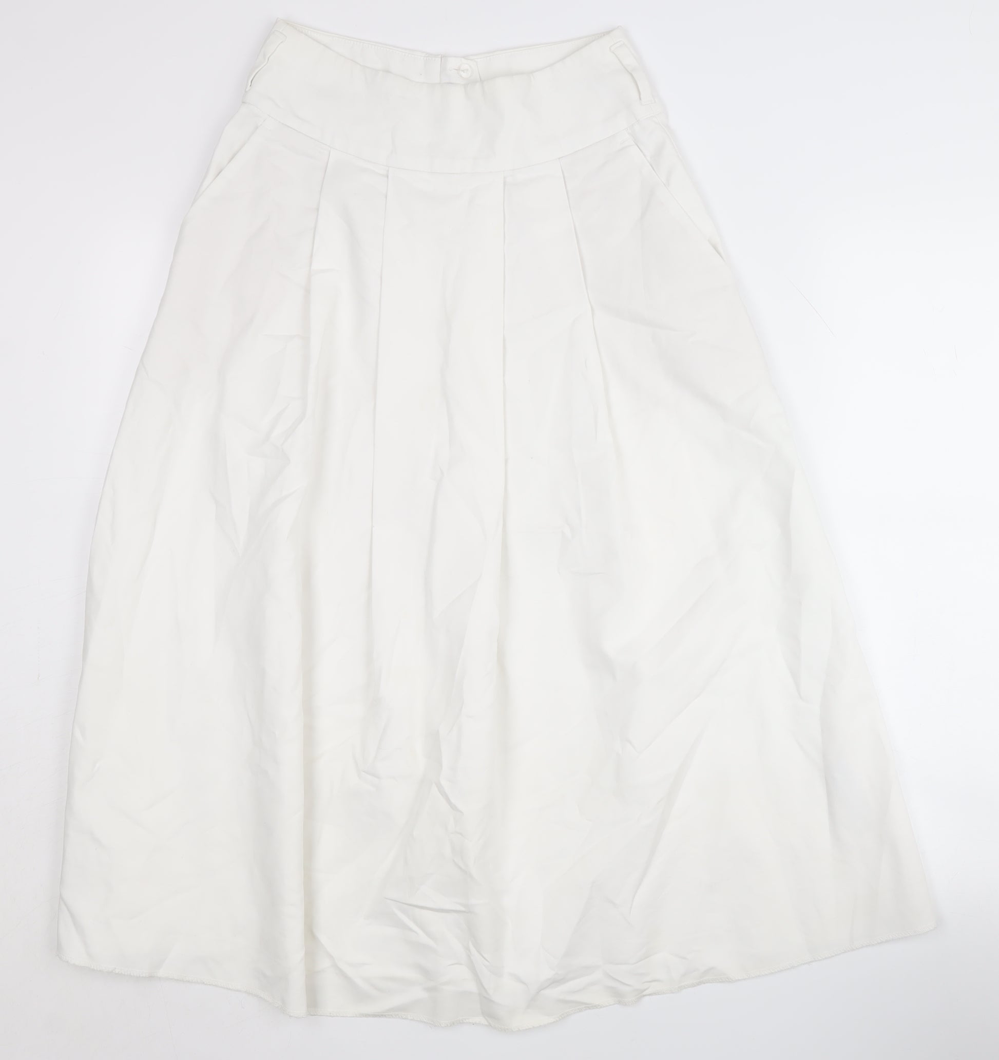 Discover an elegant touch to your wardrobe with this Marks and Spencer Women's A-Line Skirt in a crisp and clean white. Tailored from a comfortable cotton and elastane blend, this stylish piece ensures smooth wearability and ease of care with its machine washable feature. The skirt offers a high-rise fit, complementing its zip closure for a seamless silhouette suitable for everyday casual occasions. Despite its excellent condition, this piece bears slight wrinkling, adding to its vintage charm without compromising its chic appeal. Designed as a regular size, this skirt suits a UK size 6 elegantly. Ideal for any fashion-forward wardrobe, this A-line skirt is perfect for those looking to blend simplicity with style. Pair it with your favourite top and accessories for a complete look.