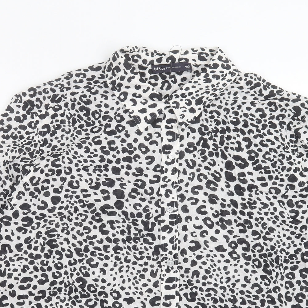 Womens White Animal Print Cotton Basic Button-Up Size 16 Collared