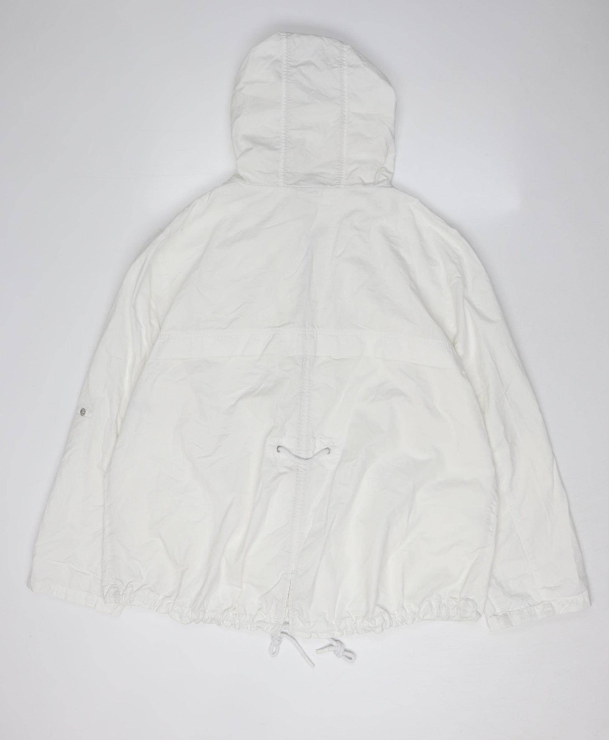 Step out in style with this classic white anorak jacket from Marks and Spencer, designed for the modern woman. The jacket is composed of 100% cotton, promising comfort and breathability, making it an ideal choice for both spring and autumn seasons. Available in size 18, this regular fit jacket is perfect for casual outings.Equipped with a functional hood, this jacket is perfect for unexpected drizzles, while the mid-length design offers a flattering silhouette. It features secure zip closure with additional snap buttons for added safety. The convenient snap pockets provide ample space for your essentials, and the drawstring accents add a touch of stylish practicality.The clean white colour makes it easy to pair with any outfit, ensuring it becomes a staple in your wardrobe. The jacket exhibits no patterns, keeping it simple and versatile. With long sleeves, it offers ample coverage and protection against cooler winds.Thoughtfully crafted with machine washable fabric for easy maintenance, this jacket keeps you looking chic and well-groomed with minimal effort. Ideal for a day out in the city or a casual brunch with friends, it's versatile enough to complement various occasions.Brand new and with tags, this jacket is in pristine condition, ready to offer you both functionality and fashion. Treat yourself or someone special to a stylish upgrade with this Marks and Spencer white anorak jacket. Order now and make it a mainstay of your next season's wardrobe.