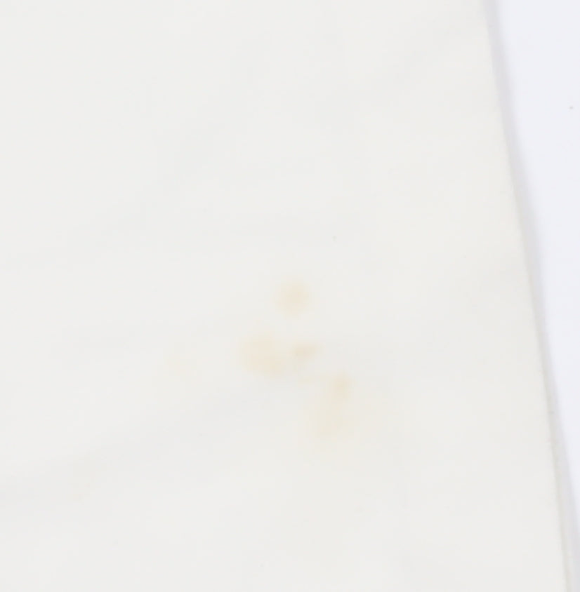 Elevate your style with these sophisticated white trousers from Marks and Spencer, perfect for both business and casual occasions. Carefully crafted from a blend of viscose, polyester, and elastane, these trousers offer a comfortable fit with a subtle stretch, ensuring ease of wear throughout the day. The classic straight-leg design provides a timeless silhouette, while the mid-rise flat front adds a touch of modern elegance. Equipped with both a button and zip closure, and featuring convenient pockets, these trousers are as practical as they are stylish. The included belt accentuates the waist, enhancing the overall fit and giving a polished look whether you're heading to the office or enjoying a day out. Perfect for the Spring and Summer seasons, the machine-washable fabric promotes easy care, saving you time and effort. While they do feature a minor stain on the leg, they are still in very good condition, ready to accompany you on countless occasions. Acquire these versatile trousers today, at a special price-point, and enrich your wardrobe with a piece that effortlessly blends comfort, practicality, and style.