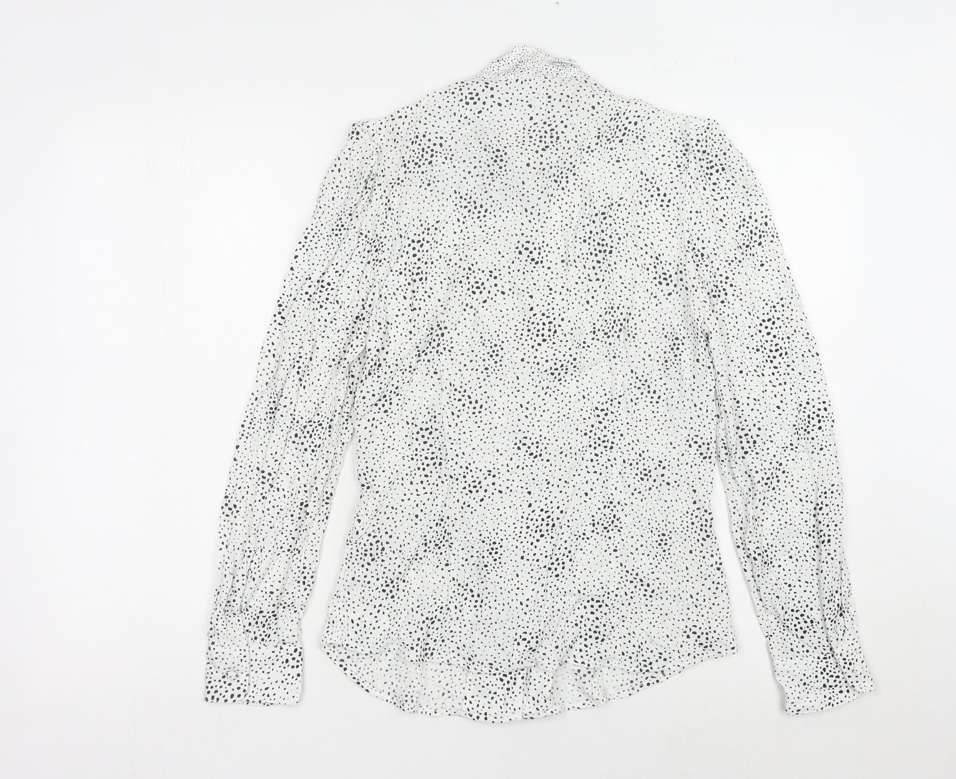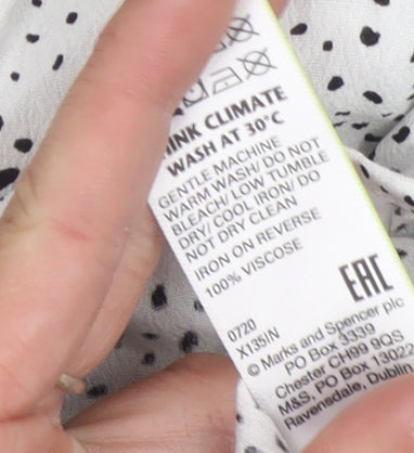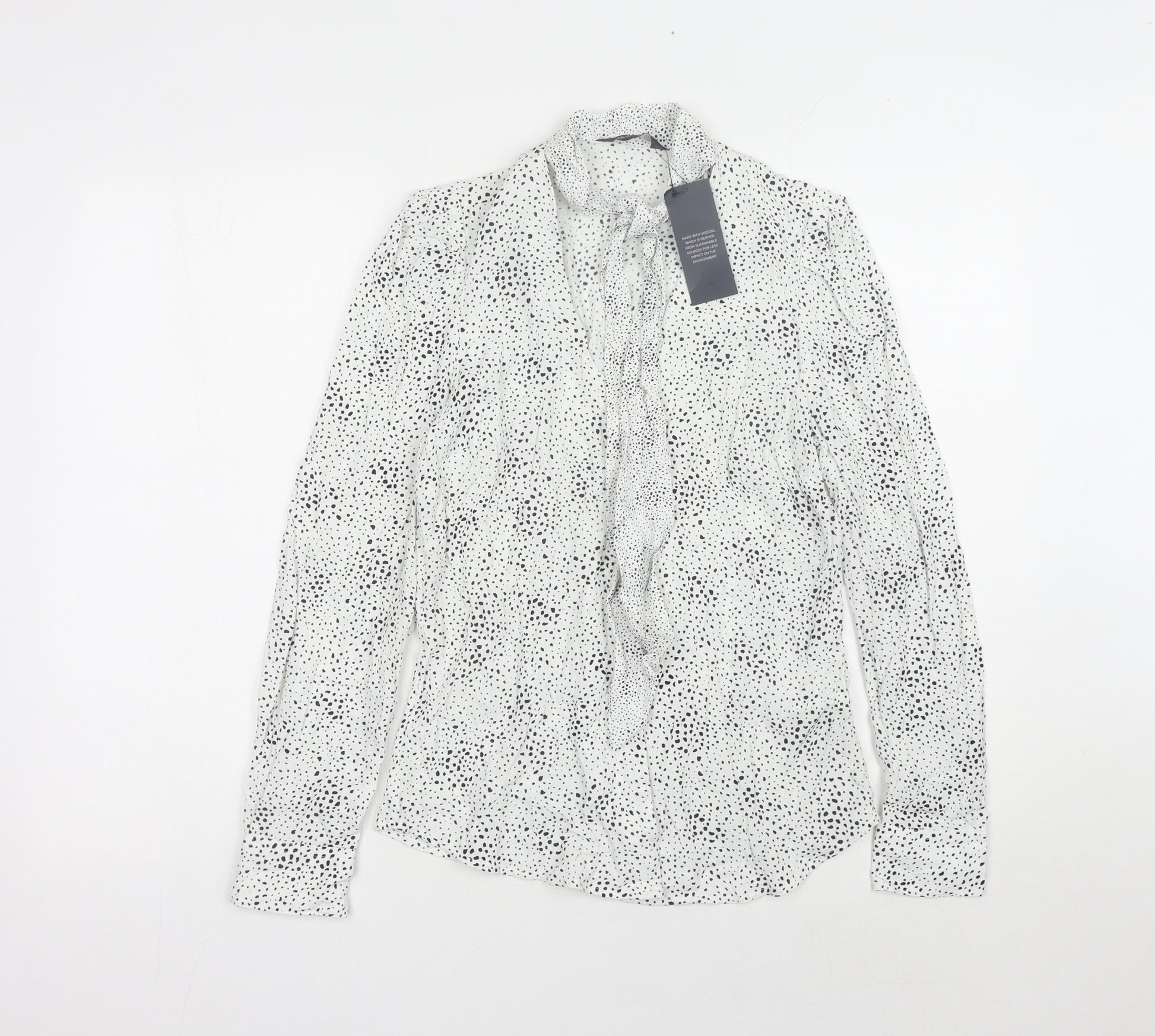 Elevate your wardrobe with this chic Marks and Spencer Women's Blouse in size 8. Crafted from breathable viscose, this white blouse features a classic animal print pattern, lending it a trendy yet timeless appeal. Ideal for casual outings or pairing with workwear, this piece boasts long sleeves providing comfort and style for various occasions. Designed for the fashion-forward, its button closure and regular fit ensure an effortlessly flattering silhouette. Machine washable for easy care, this is a must-have for any wardrobe. Buy now to enjoy effortless elegance with minimal fuss.