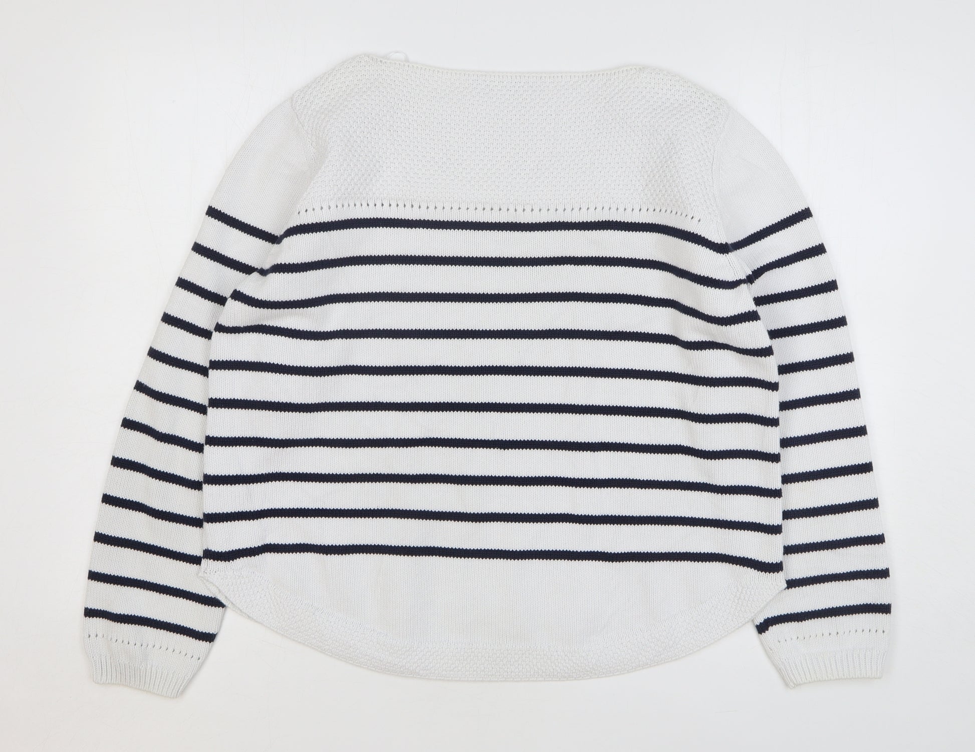 Womens White Boat Neck Striped Cotton Pullover Jumper Size 16