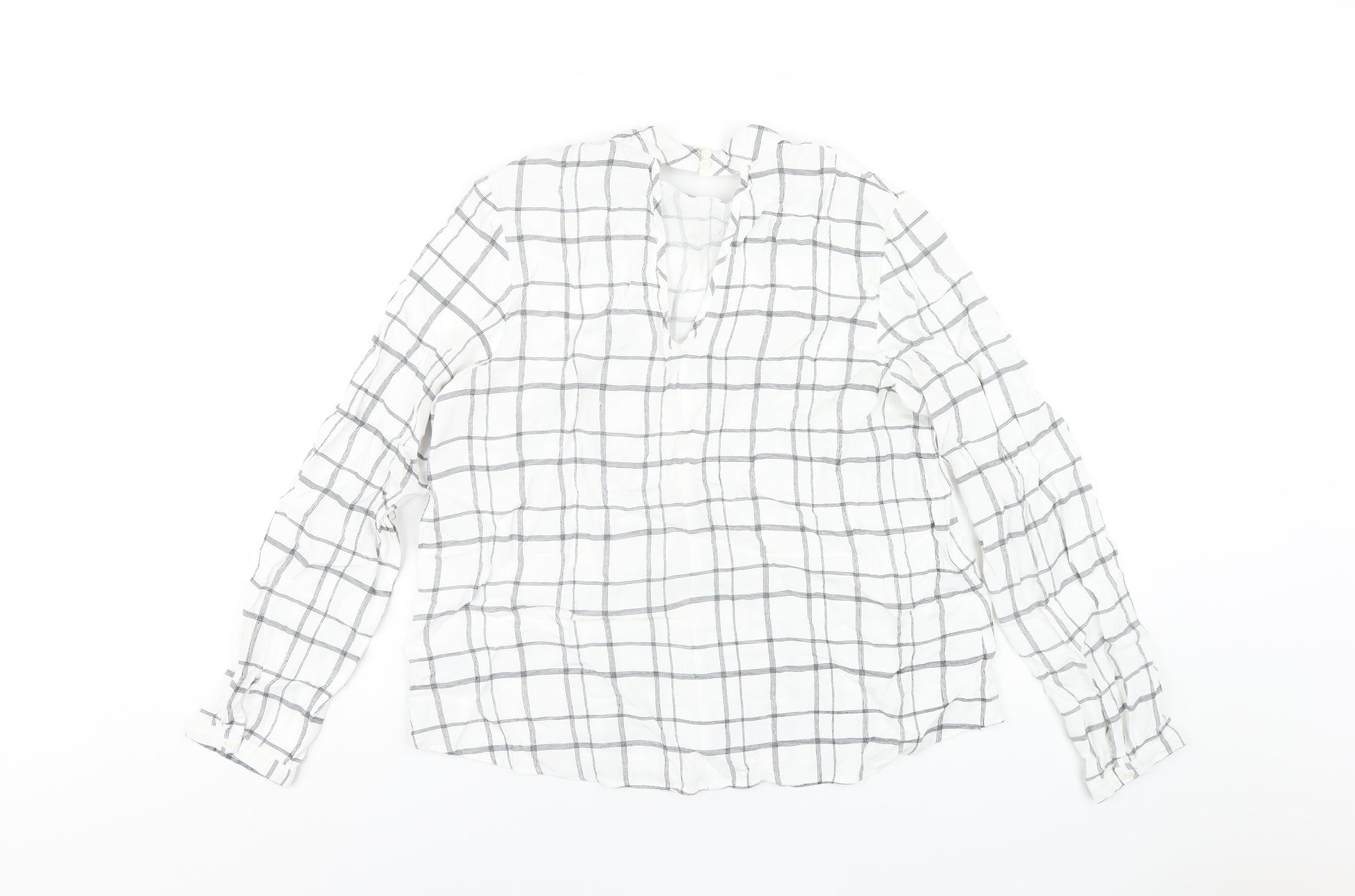 Womens White Check Viscose Basic T-Shirt Size 14 Round Neck