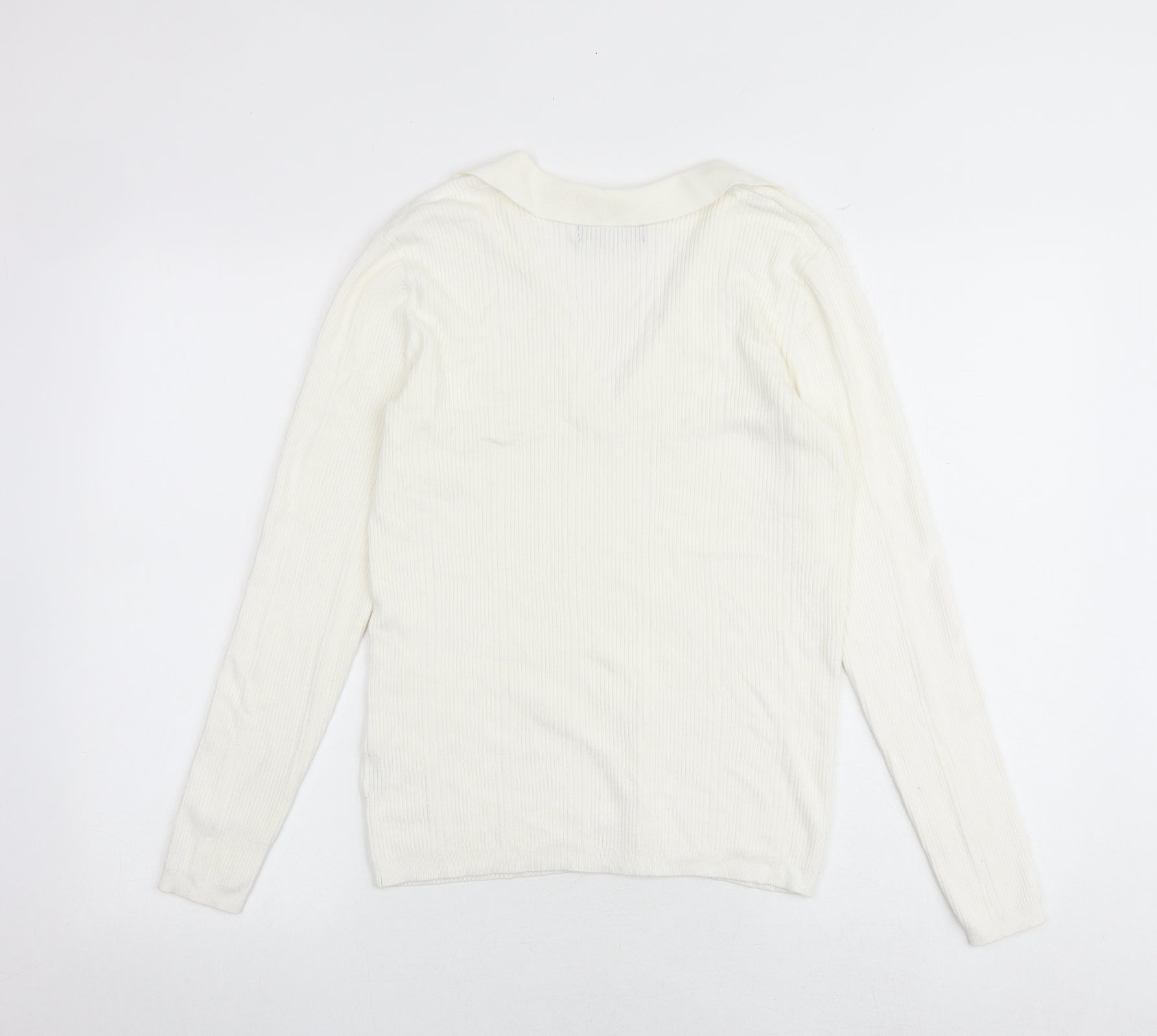 Womens White Collared Acrylic Pullover Jumper Size 12