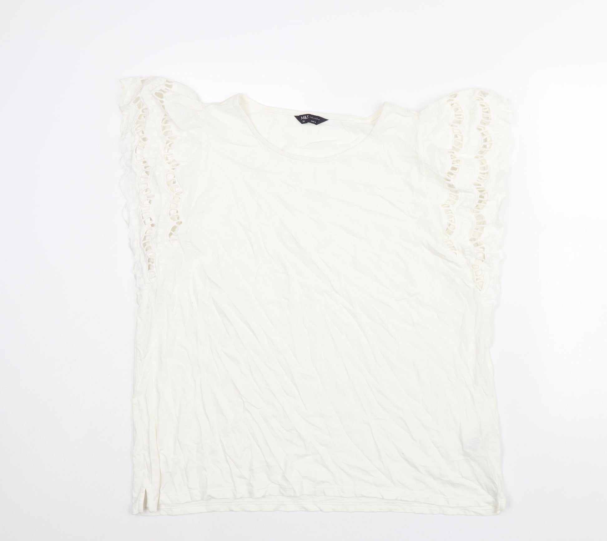 Womens White Cotton Basic Blouse Size 20 Round Neck - Frill Sleeve
