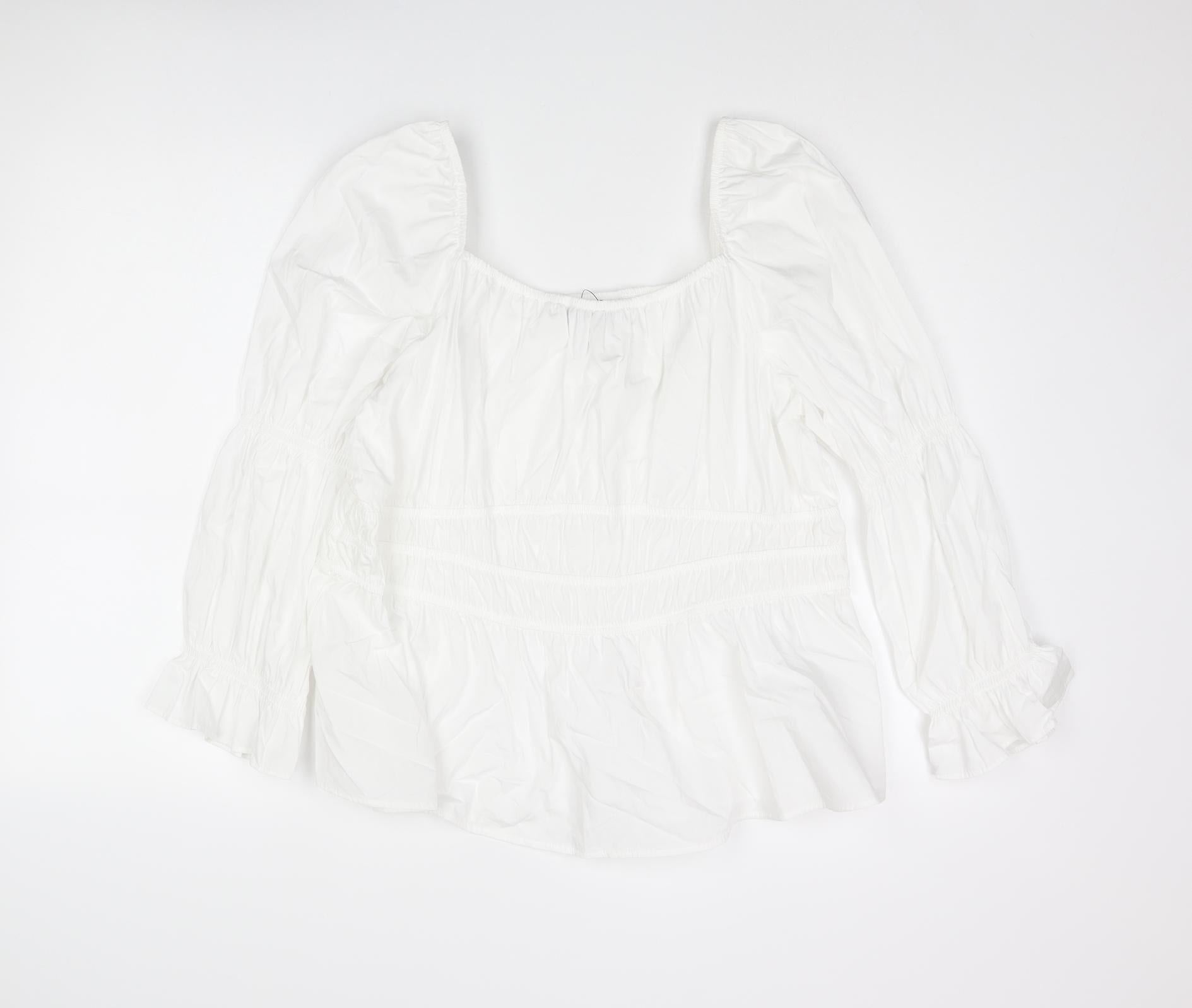 Womens White Cotton Basic Blouse Size 20 Square Neck - Rouched