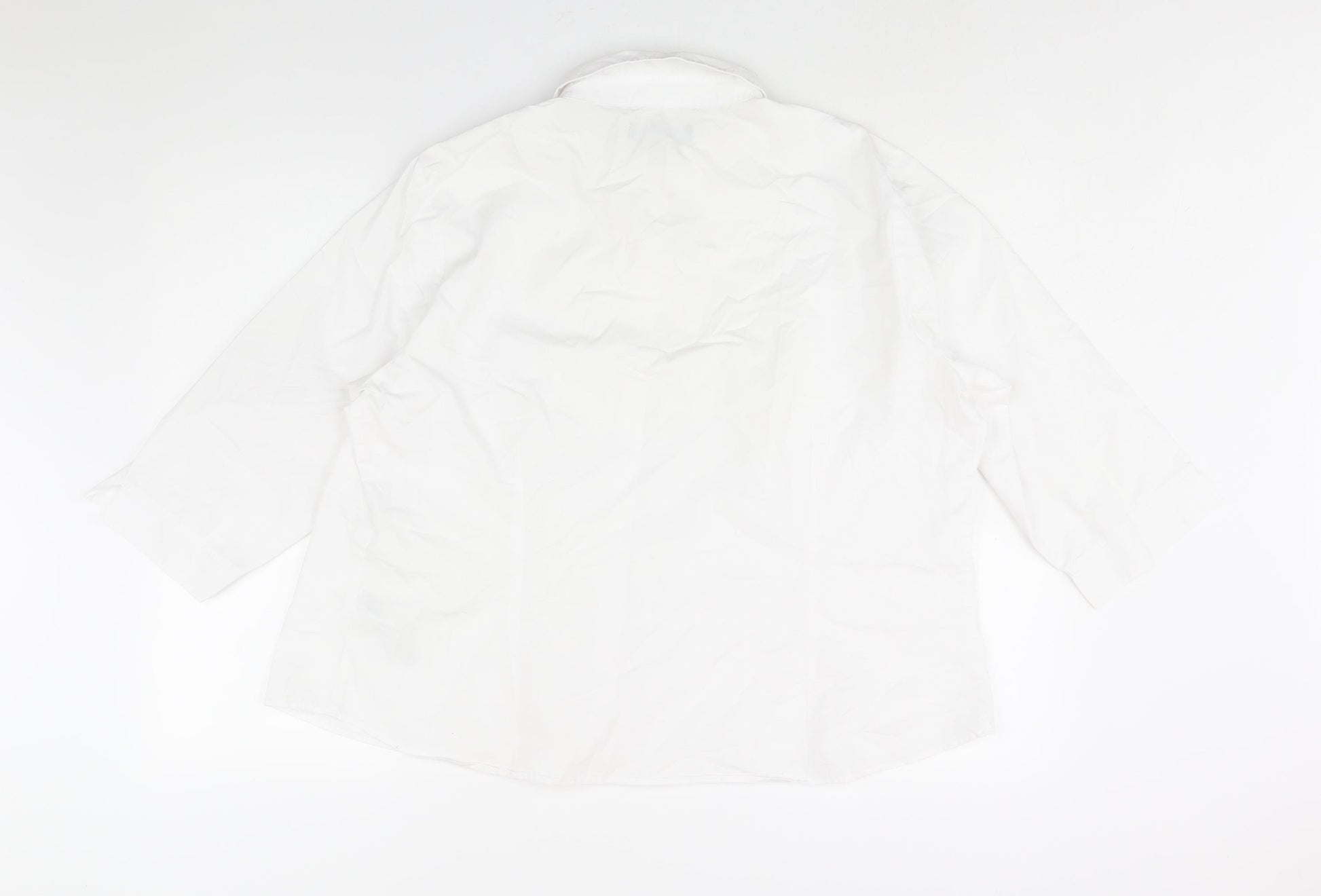 Womens White Cotton Basic Button-Up Size 24 Collared
