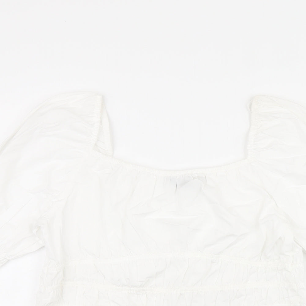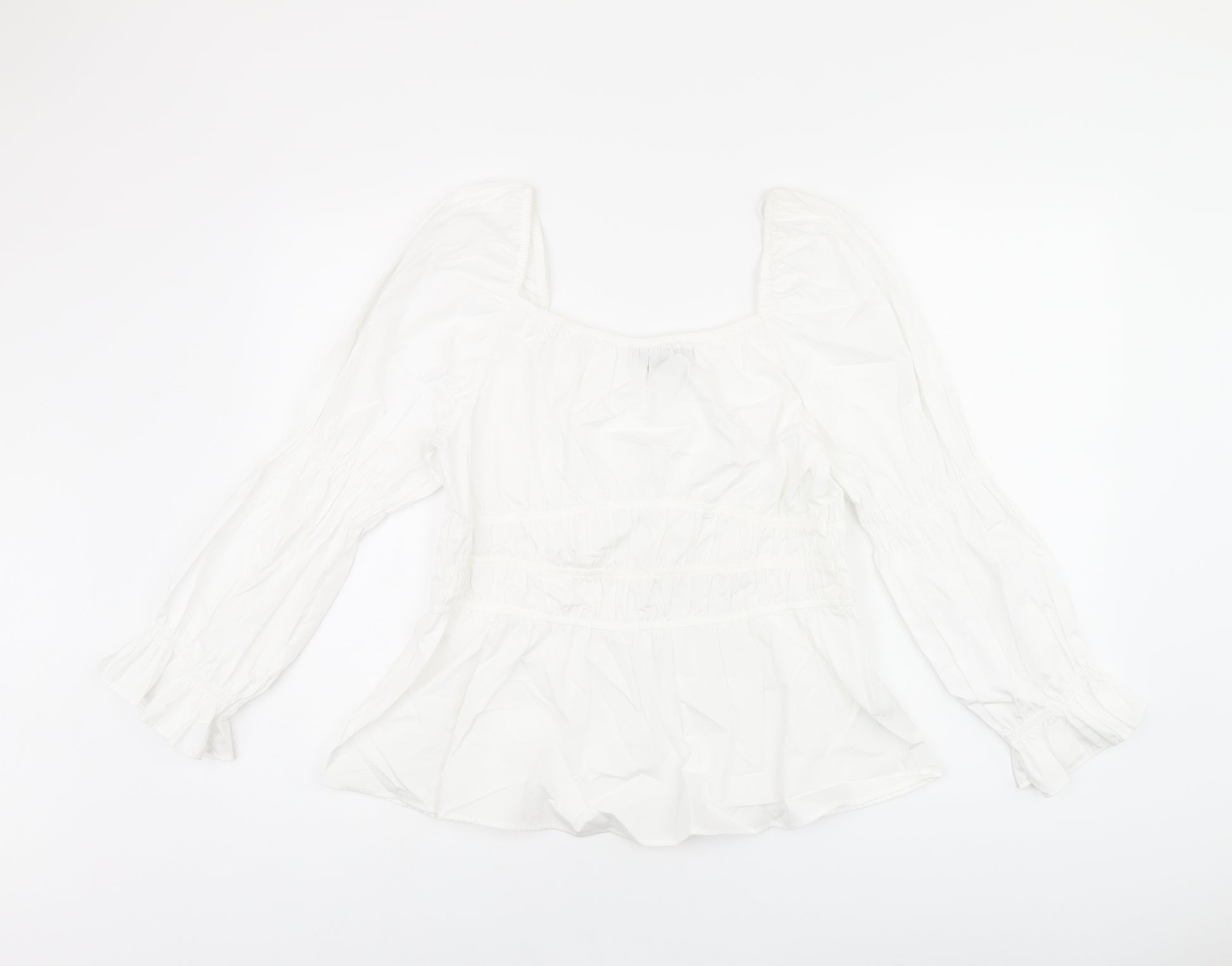Womens White Cotton Basic T-Shirt Size 16 Square Neck