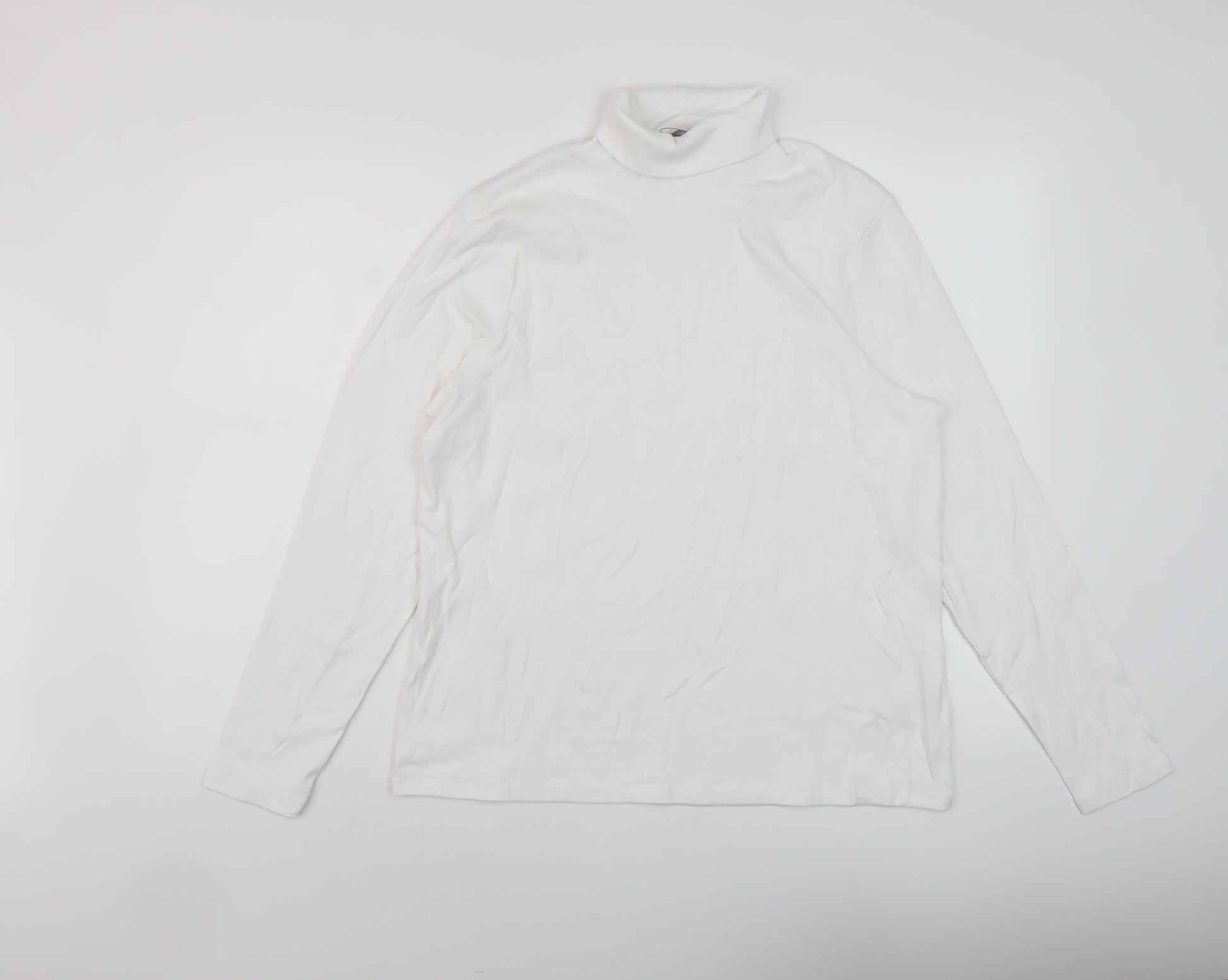 Womens White Cotton Basic T-Shirt Size 22 Roll Neck
