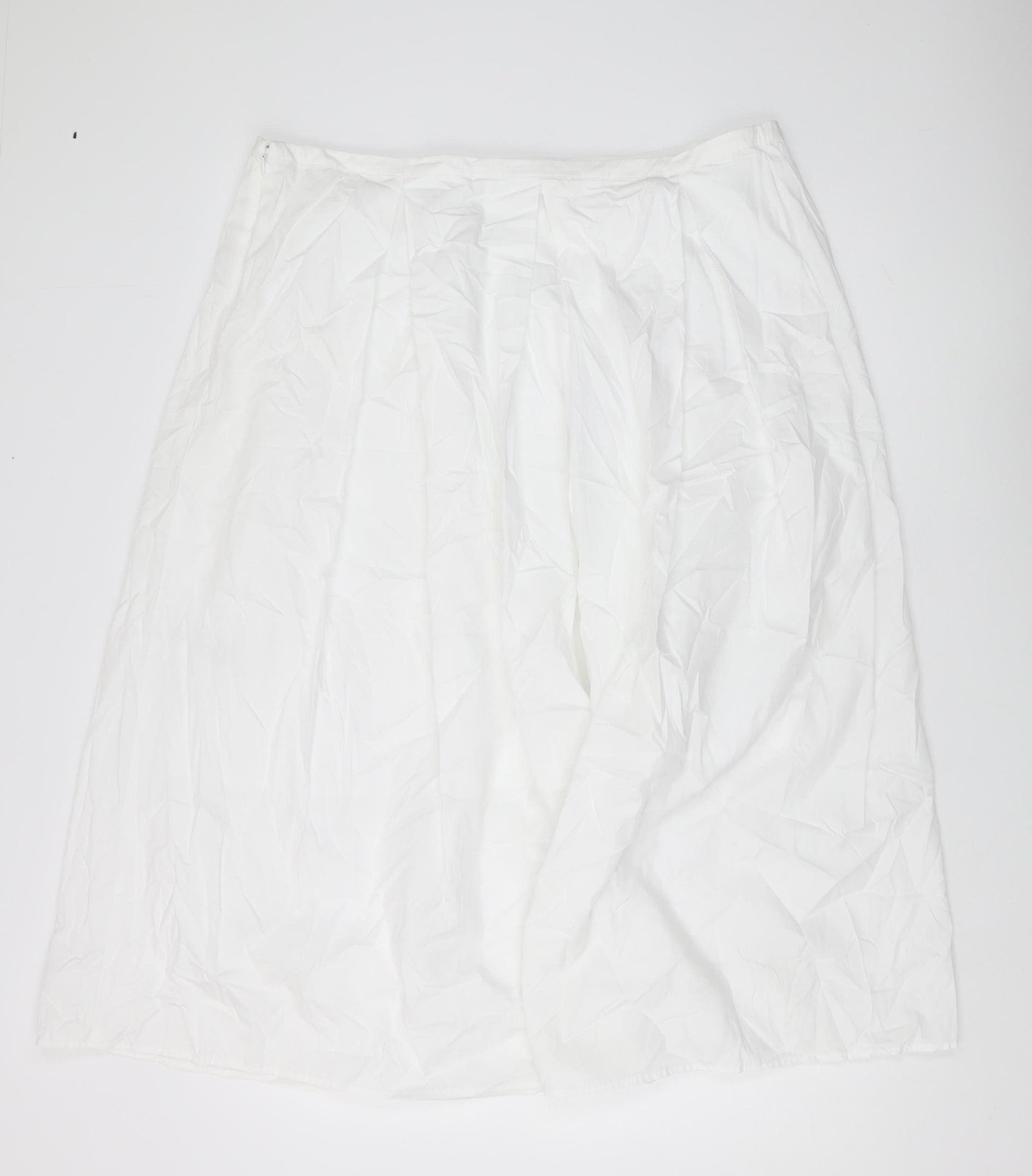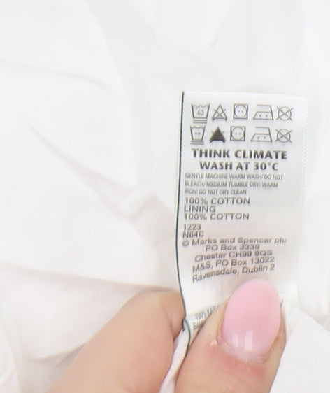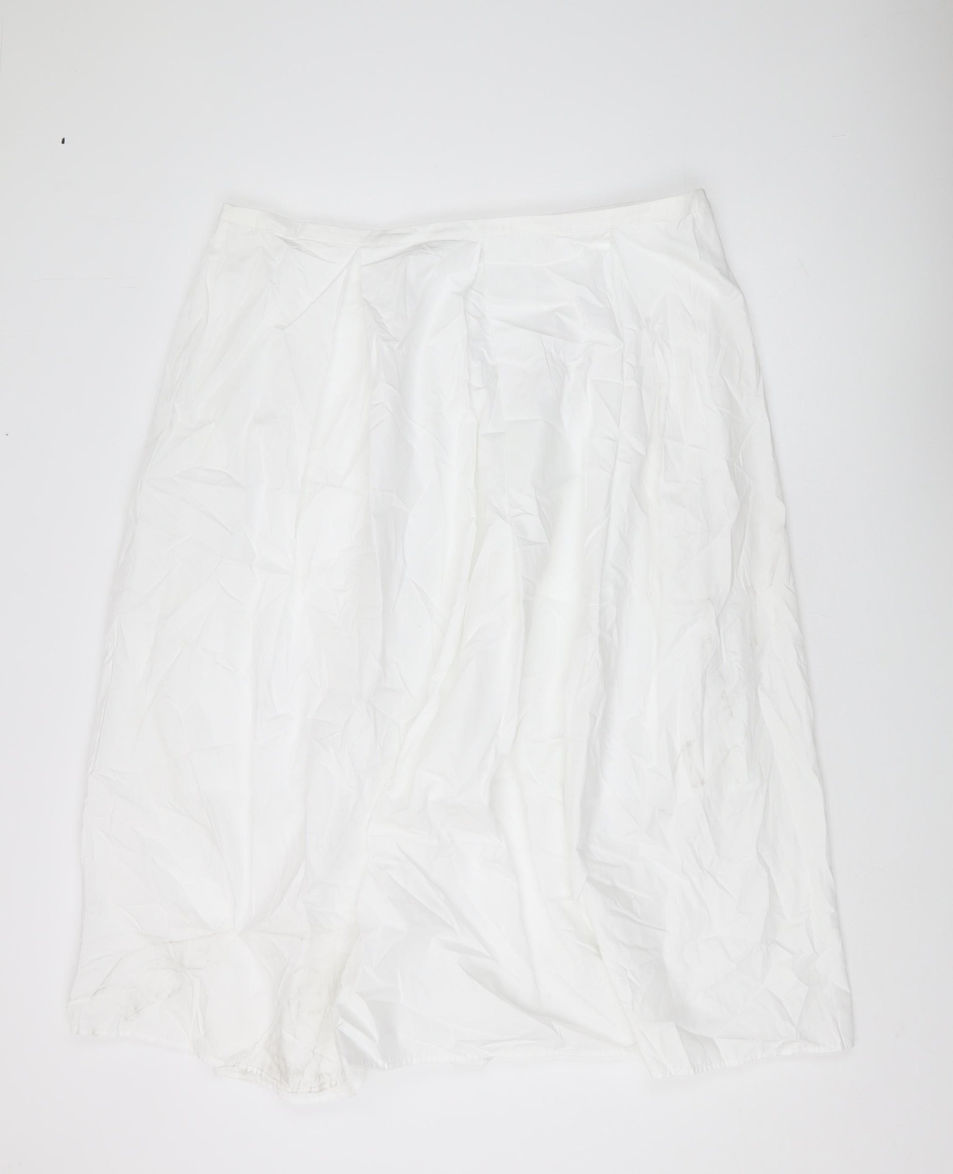 Explore elegance with this classic white cotton skirt from Marks and Spencer, tailored for women in size 20. Crafted from 100% cotton, the skirt ensures comfort and breathability, allowing for versatile styling across various occasions. While it is machine washable for easy care, please note slight stains at the bottom, reflected in the reasonable pricing. Its clean design with no pattern or accents ensures it seamlessly pairs with any top of choice, offering countless style possibilities from casual lunch dates to relaxed social gatherings. A reliable piece for the wardrobe, this skirt embodies both quality and subtle sophistication.