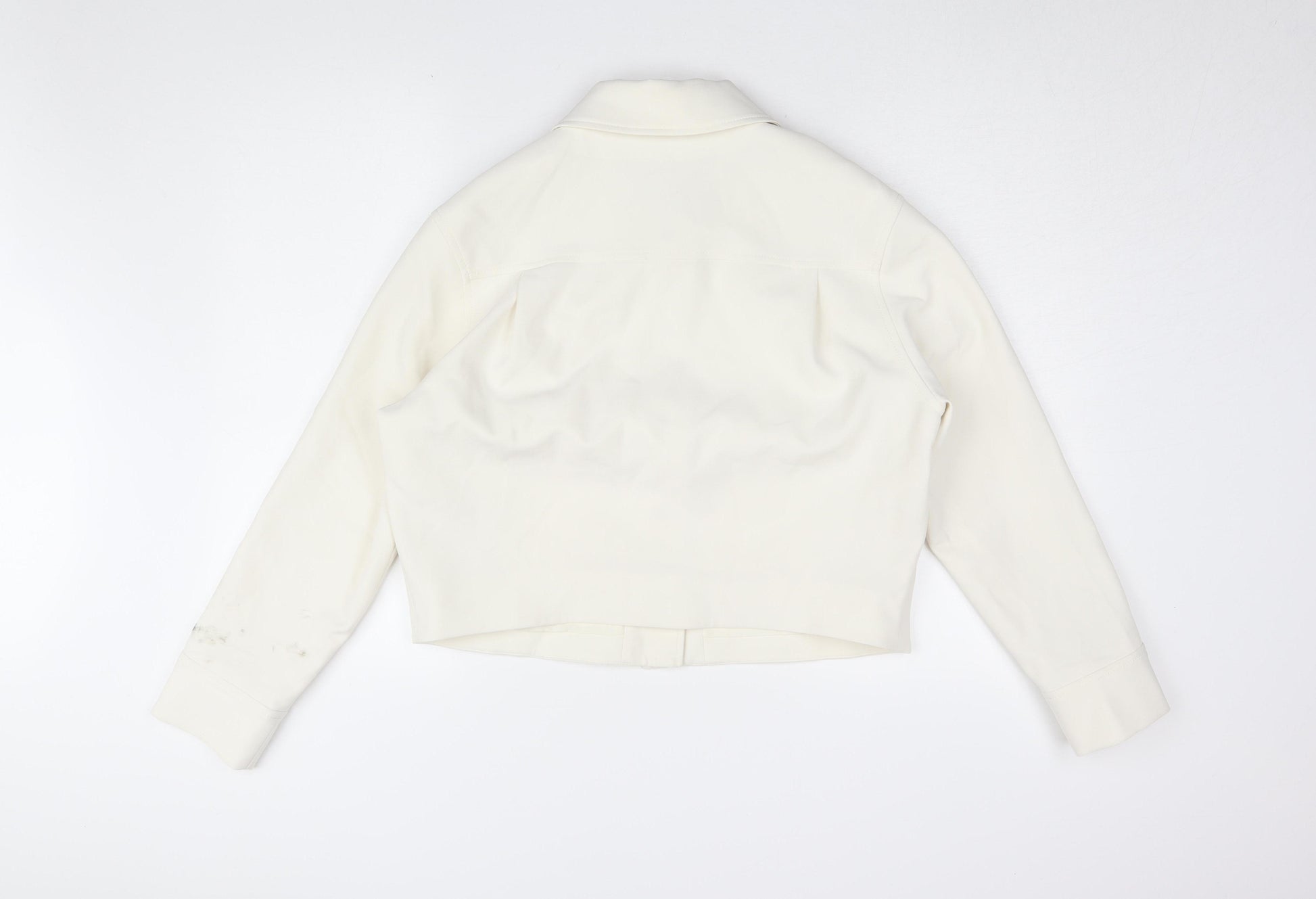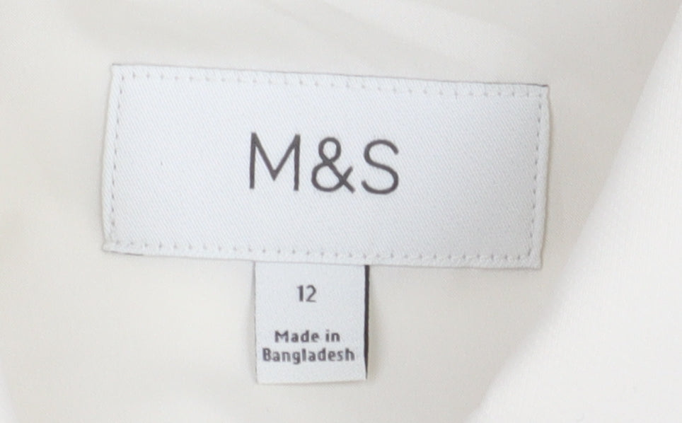 Step up your fashion game with this elegant Marks and Spencer cropped jacket, tailored for women who appreciate sophistication and style. Expertly crafted from a blend of 76% polyester, 16% viscose, and 8% elastane, this white jacket offers not only a flattering fit but also comfort and durability. Ideal for both casual outings and workwear, its timeless design features a collared neckline and convenient front pockets, enhancing its functional appeal. The buttoned closure ensures a sleek look while providing an extra layer of warmth during transitional weather. Perfect for all seasons, this jacket pairs effortlessly with both jeans and skirts, making it a versatile addition to any wardrobe. Despite minor marks on the sleeve, the jacket is in excellent condition, maintaining its charm and quality. Experience effortless chic with this size 12 beauty, machine washable for easy care. Don't miss the opportunity to add this wardrobe essential to your collection.
