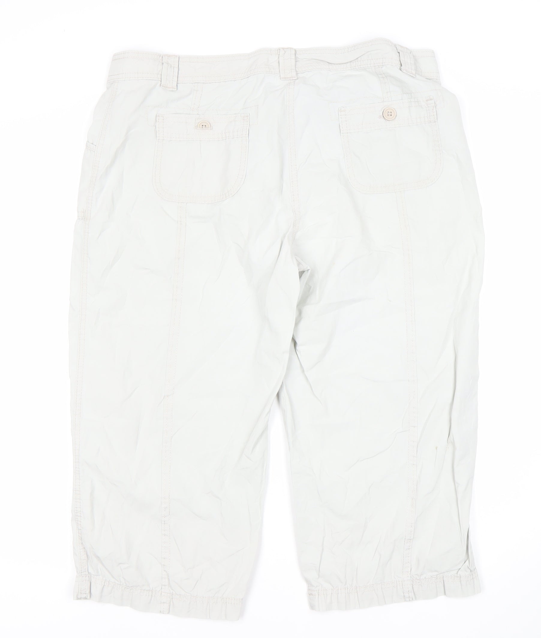 Embrace effortless style with these Marks and Spencer women's white cropped trousers. Perfect for warm weather, these trousers are crafted from 100% cotton, ensuring comfort and breathability. The button closure adds a classic touch, while the regular fit and mid-rise offer a flattering silhouette. Designed with practicality in mind, these trousers feature handy pockets, making them ideal for everyday wear. Pair them with a simple tee for a casual look or dress them up with a blouse for a more polished ensemble. Whatever the occasion, these versatile trousers are a must-have addition to your wardrobe. Although they appear gently used, their excellent condition means they promise durability and style. A great piece for any casual outing, you'll find these trousers to be both functional and stylish.