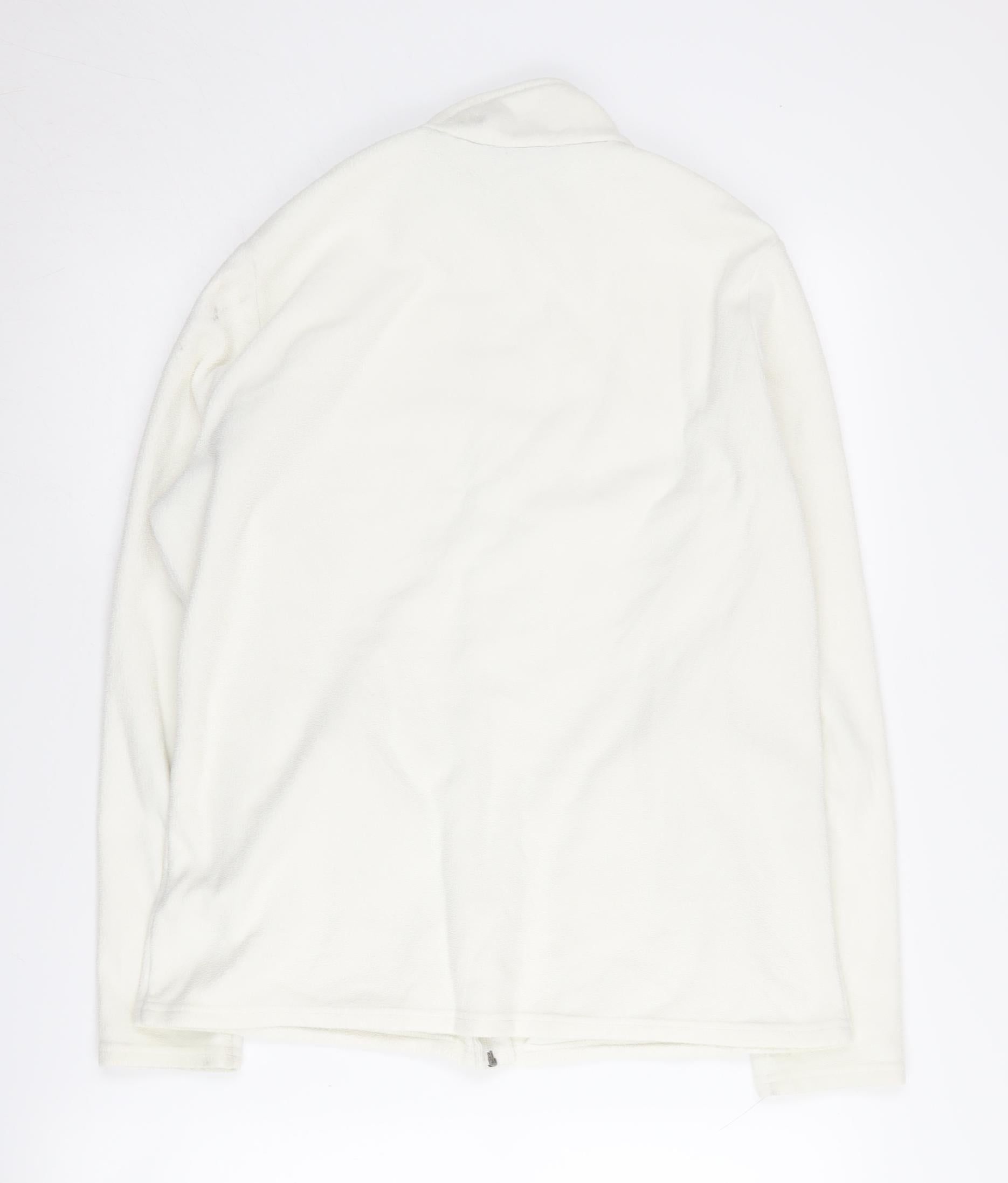 Stay cosy and stylish with this Marks and Spencer women's jacket, ideal for casual outings. Crafted from quality fleece in a pristine white shade, this mid-length jacket features a full zip closure and convenient zipped pockets, ensuring both warmth and functionality. Its regular fit and long sleeves make it an effortless choice for layering during any season. The jacket is made entirely of polyester, ensuring durability and easy maintenance with machine washable care. Whether you're heading out for a stroll or running errands, this classic white jacket will easily complement your wardrobe. A perfect blend of comfort and style, it's a must-have for every fashion-conscious woman.