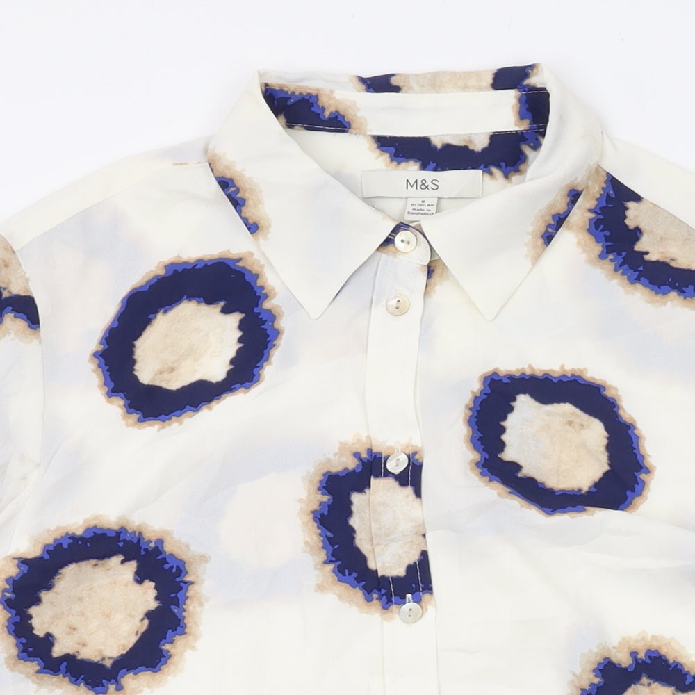 Womens White Geometric Polyester Basic Blouse Size 8 V-Neck