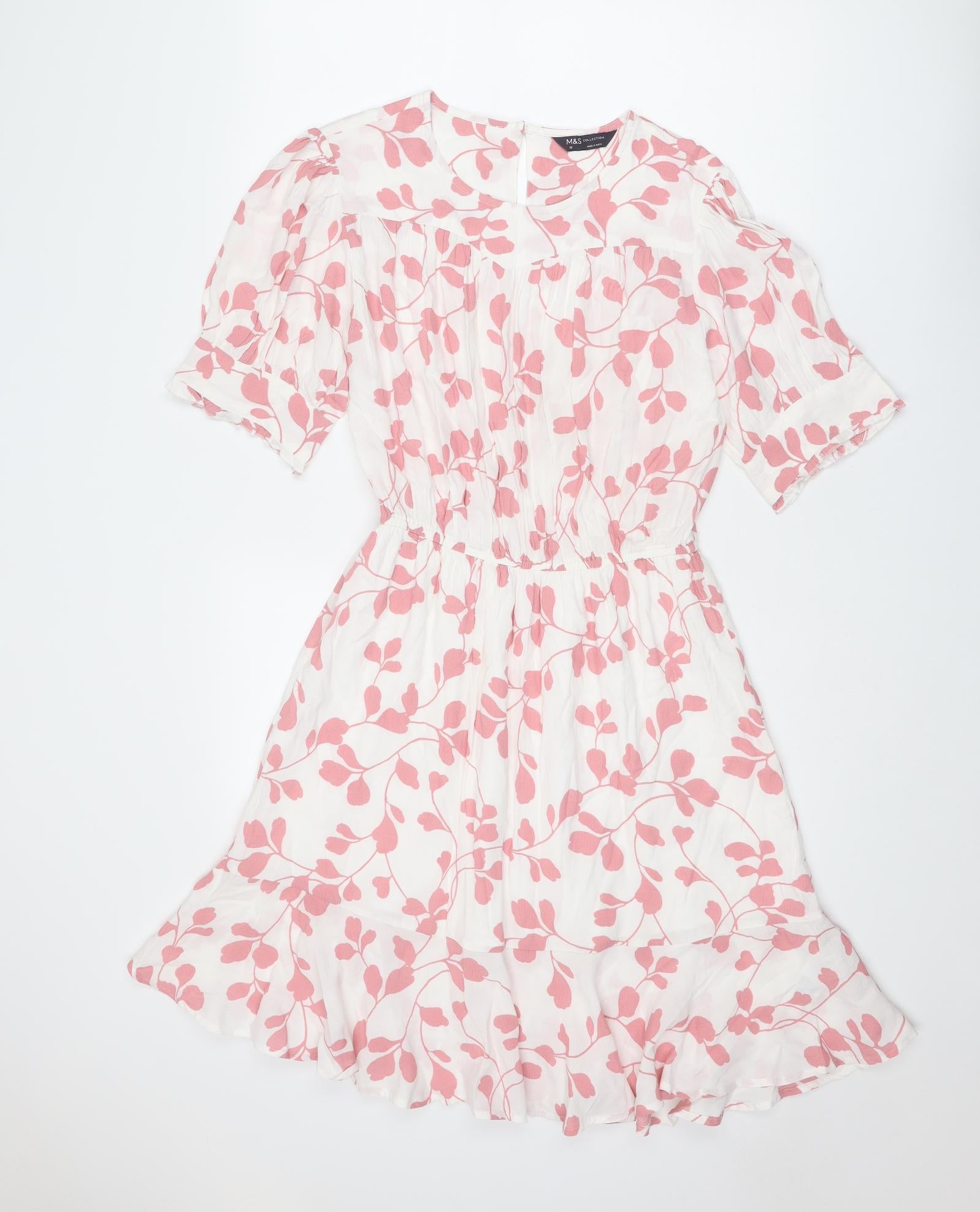 Marks and Spencer Womens White Floral Viscose A-Line Size 10 Boat Neck Zip
