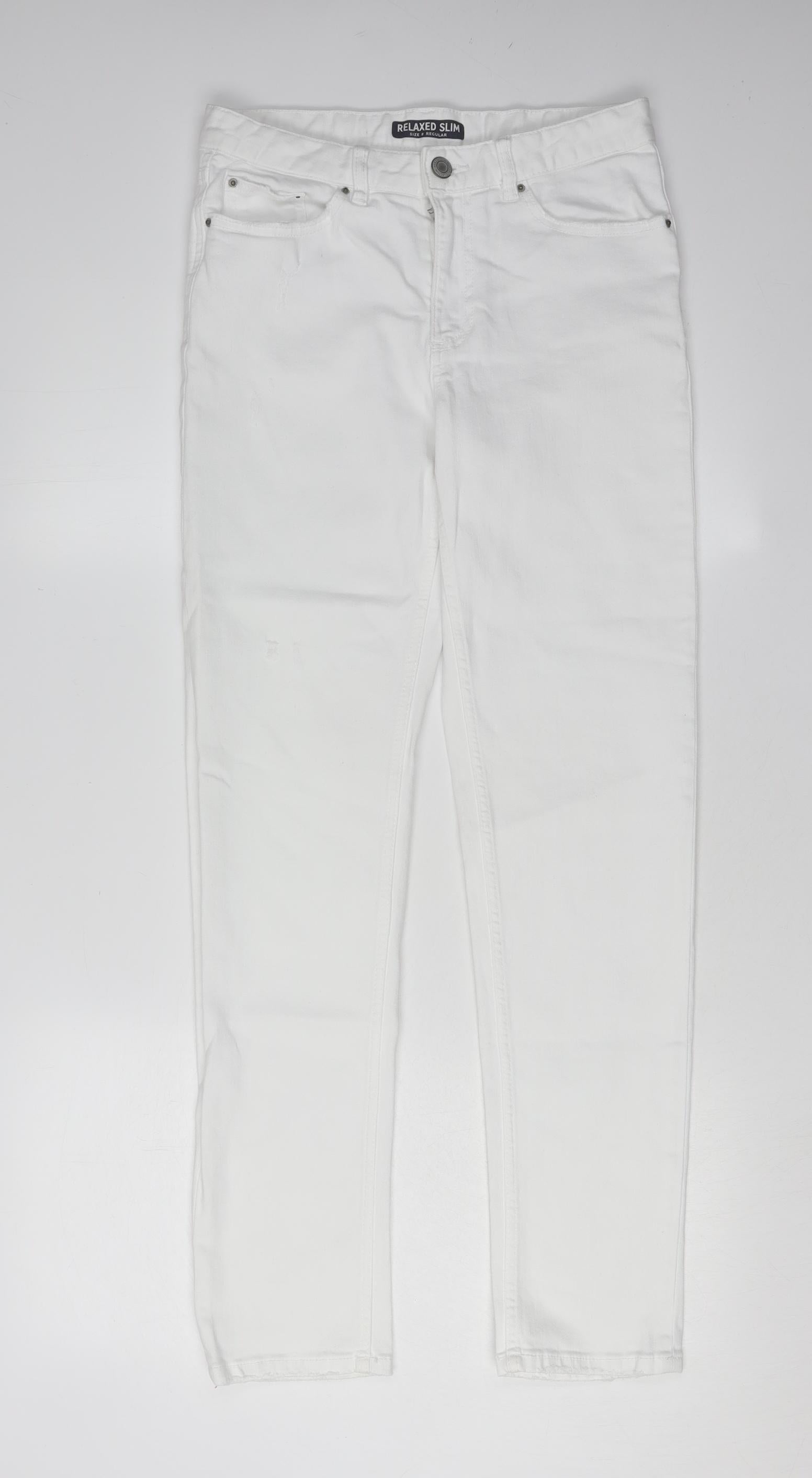 Introducing these elegant white jeans from Marks and Spencer, tailored for the modern woman seeking comfort and style. Crafted in a relaxed slim fit, these jeans are perfect for creating a sleek silhouette while ensuring maximum comfort. The classic white color offers a versatile look, easily paired with any top or footwear for casual outings or semi-formal events. Although pre-loved, these jeans are in excellent condition with very slight wear visible, ensuring you step out with confidence every time. The convenient button closure and 5-pocket design add functionality, making these jeans both practical and stylish. Suitable for all seasons, they are an essential addition to any wardrobe. Experience the unique blend of quality and fashion that Marks and Spencer is renowned for.