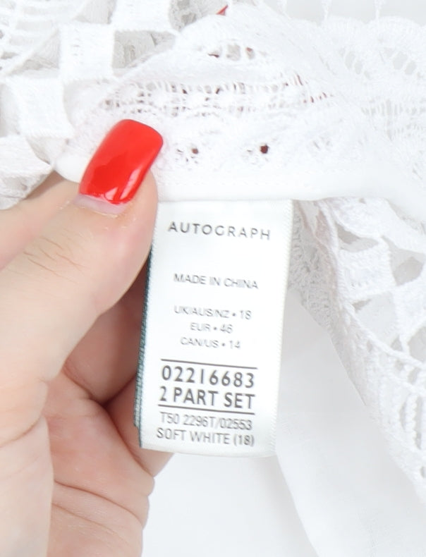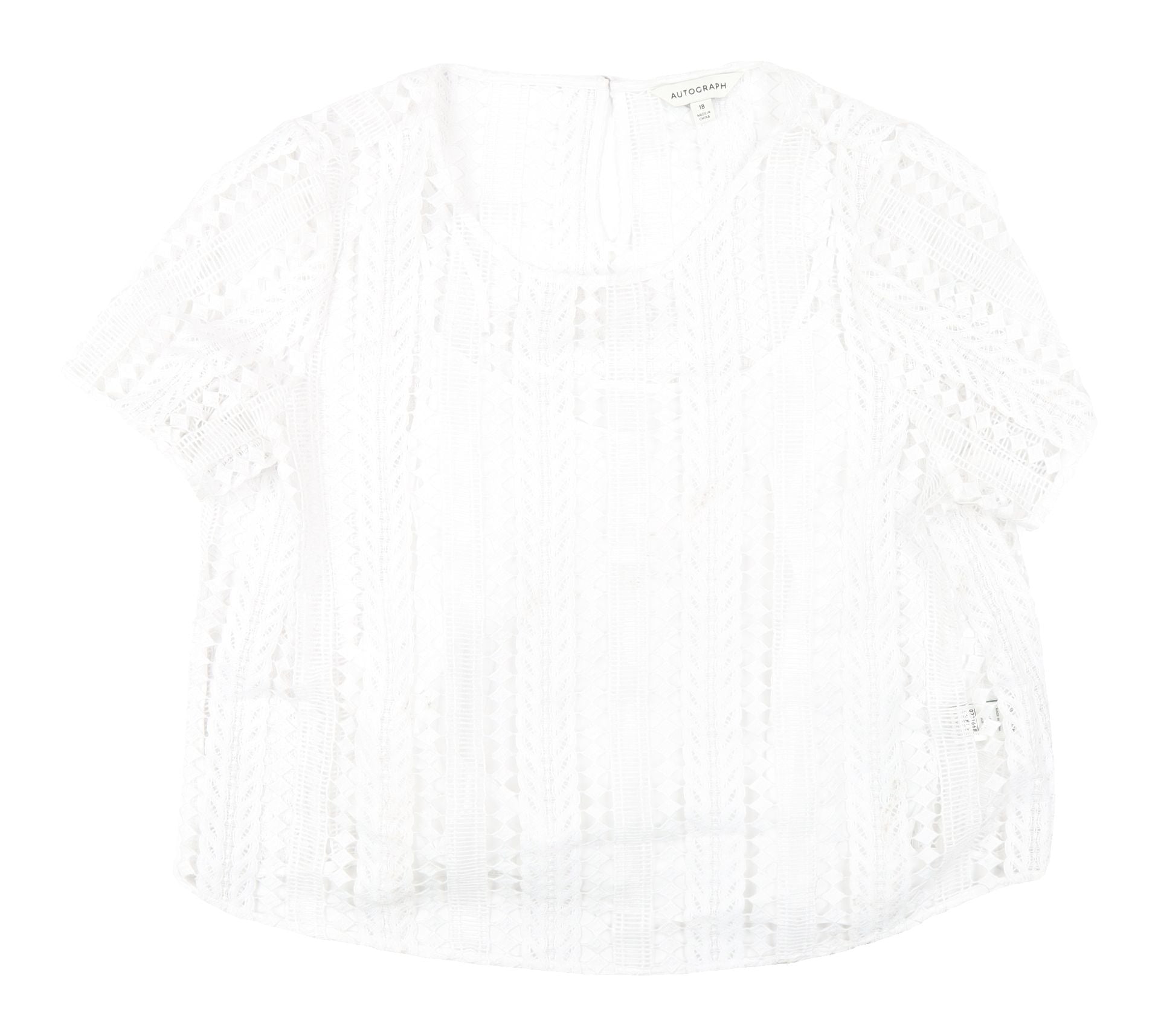 Step out in style with this exquisite Marks and Spencer lace blouse in a pristine white shade, tailored for the discerning woman. Sized at a comfortable UK 18, this regular fit blouse offers both elegance and ease, ensuring you feel as fabulous as you look. The delicate lace fabric adds an air of sophistication, making it perfect for those spring and summer days where you want to showcase a refined yet relaxed style. With a simple round neckline and classic short sleeves, this blouse is both versatile and chic, ideal for casual gatherings or elevating your everyday wardrobe. Crafted from high-quality polyester, it promises durability while maintaining a feather-light feel, allowing you to move freely and confidently. The lined design ensures comfort and modesty, adding to the blouse's overall allure. Embrace timeless elegance with this beautiful piece, and pair it with your favourite jeans or a tailored skirt to complete the look. Easy to care for, simply machine wash and wear, offering practicality alongside its stylish appeal. This new piece with tags intact makes a wonderful addition to any wardrobe, perfect for the fashion-forward individual looking to make a statement. Don't miss your chance to own this stunning blouse that combines classic style with modern flair, a must-have for any occasion.