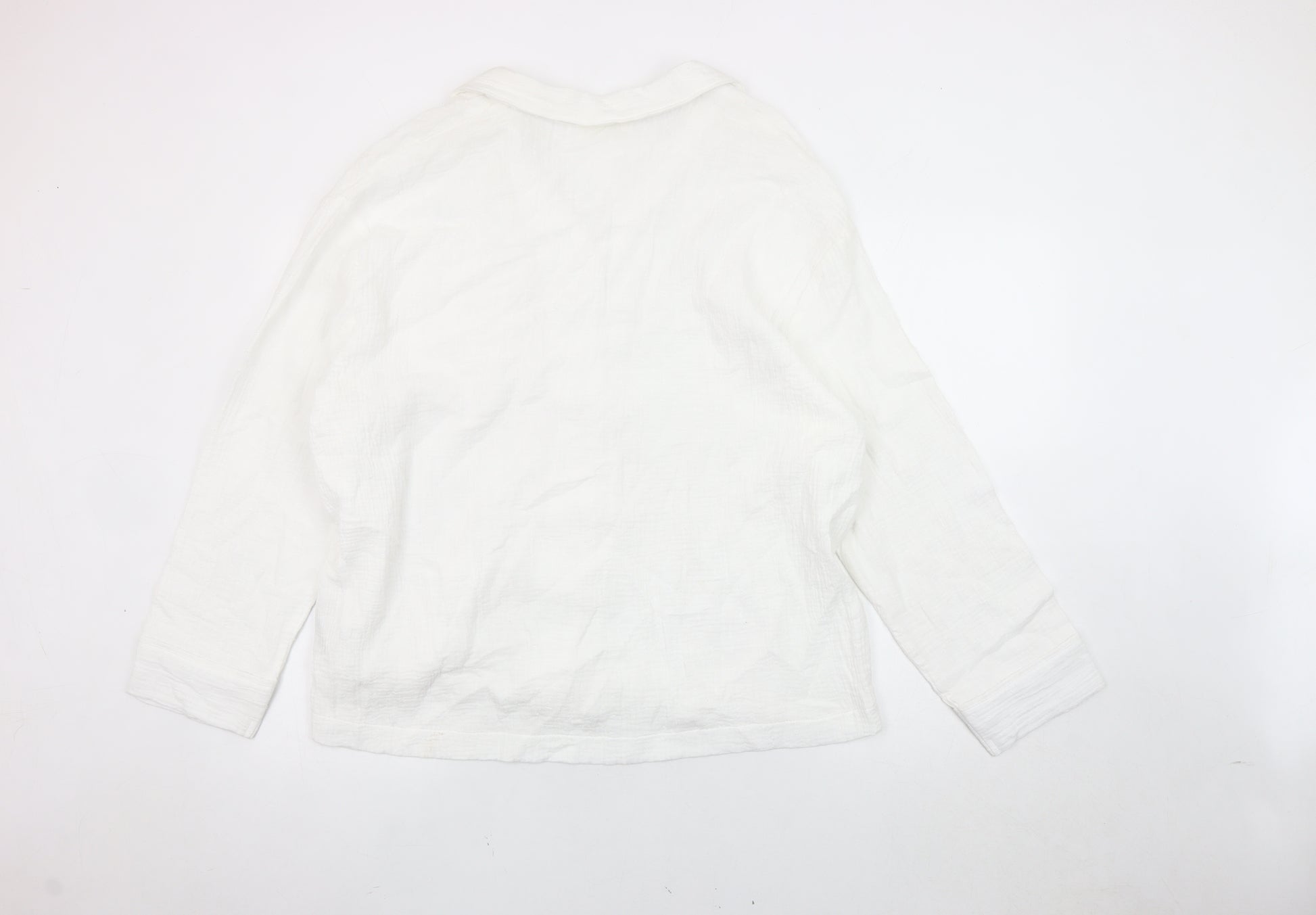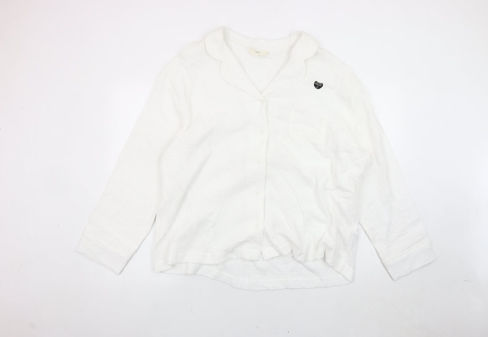 Discover the ultimate comfort with this Marks and Spencer Women's Cotton Pyjama Top. Crafted from 100% breathable cotton, this pyjama top ensures a soft and gentle feel against the skin, making it perfect for a restful night's sleep. Distinguished by its crisp white hue, this top offers a serene and calming aesthetic that is ideal for unwinding. Featuring a collared neckline and long sleeves, it provides a classic look with a touch of elegance. The button closure adds a traditional charm while allowing for easy wearing and removing. Its collar contributes to the sophisticated silhouette that sets it apart from basic sleepwear options. Designed specifically for women, this pyjama top delivers an exquisite blend of style and functionality. The machine-washable fabric ensures easy upkeep, maintaining its pristine look and feel after every wash. This top retains its new condition with tags attached, making it an impeccable choice for those who appreciate style in their nightwear collection. With its superior quality and stylish design, this Marks and Spencer pyjama top is a valuable addition to any nightwear wardrobe. Whether lounging around at home or settling in for the night, this piece promises durability and timeless appeal. Elevate your nightwear essentials with this versatile and elegant garment, offering both comfort and style without compromise.