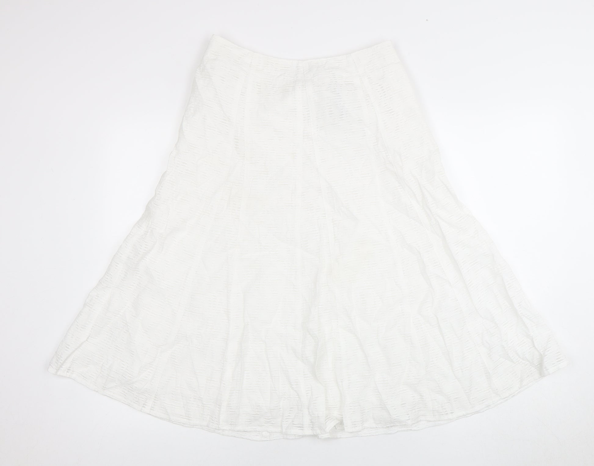Discover timeless elegance with this Marks and Spencer white midi skirt, designed for the contemporary woman who values sophistication and style. This beautifully tailored skirt is crafted from a premium blend of 70% viscose and 30% polyamide, ensuring a soft touch and an elegant drape. Its pure white hue offers a refreshing and versatile option, ideal for any occasion, whether you're dressing up for a formal gathering or seeking a chic look for a casual day out. Designed to fall gracefully to midi length, this skirt allows for ease of movement without sacrificing style. Its understated style with no pattern makes it a perfect canvas for pairing with vibrant tops or bold accessories, allowing you to personalize your outfit effortlessly. The machine washable fabric aligns with your busy lifestyle, offering convenience without compromising on garment quality.This essential piece is tailored in a size 10, fitting snugly to enhance your natural silhouette while providing comfort throughout the day. Perfectly suited for women who appreciate both functionality and fashion, this skirt holds the promise of long-lasting wear and timeless appeal. Enhance your wardrobe today with this elegant white midi skirt from Marks and Spencer, and prepare to turn heads with your refined sense of style.
