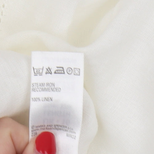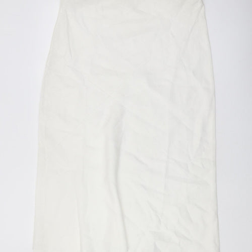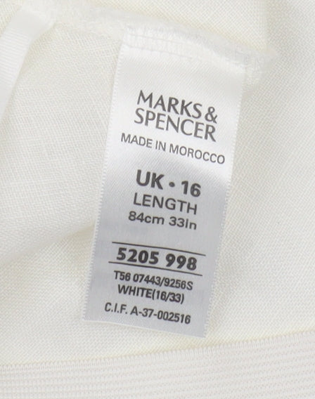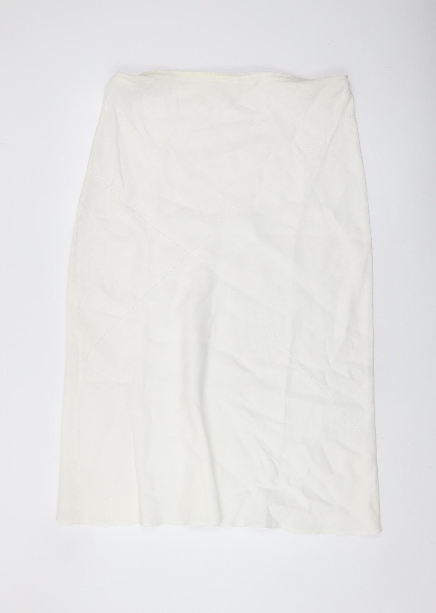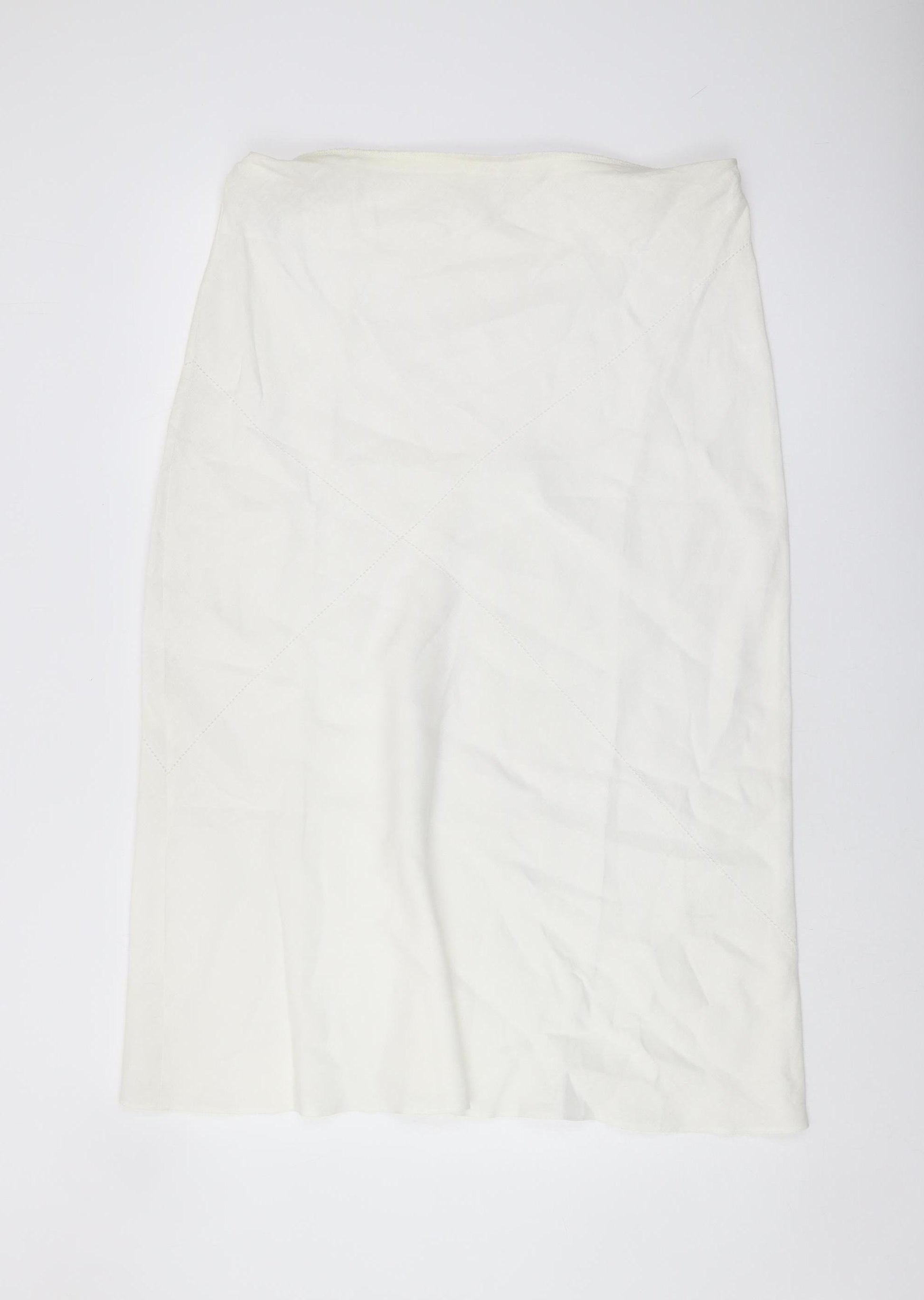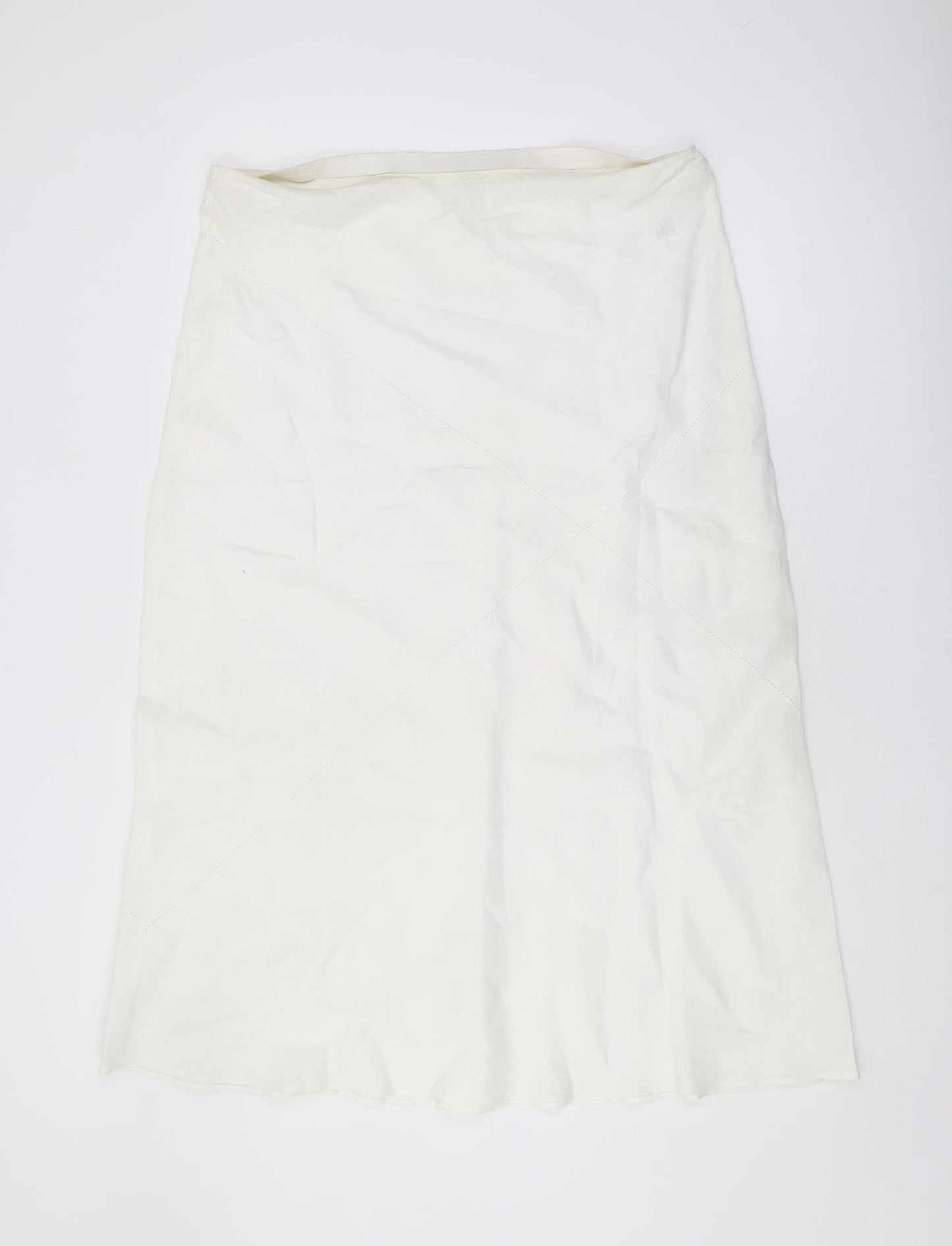 Step into elegance with this Marks and Spencer Women's Midi Skirt in a crisp white shade, perfect for elevating your wardrobe. Designed for everyday wear, this skirt is crafted from 100% linen, offering a soft and breathable feel that ensures comfort whether you're at work or enjoying a casual outing. The classic white colour is versatile, effortlessly pairing with a multitude of tops and accessories. With a size 16 regular fit, this midi-length skirt offers a flattering silhouette suitable for various body types, making it a must-have for any fashion-conscious individual. Ideal for adding a touch of sophistication to your attire, this skirt can be styled for business or leisure, making it a true wardrobe staple. Enjoy the timeless appeal and quality of Marks and Spencer, a brand known for its dedication to creating beautiful, enduring pieces. Perfect for those seeking style without compromising comfort, this skirt offers a clean, no-pattern design that allows your unique style to shine through. Easy to care for, this piece is machine washable, providing convenience alongside fashion. Please note the condition is gently worn with no visible defects, ensuring a fantastic pre-loved find at an exceptional price.