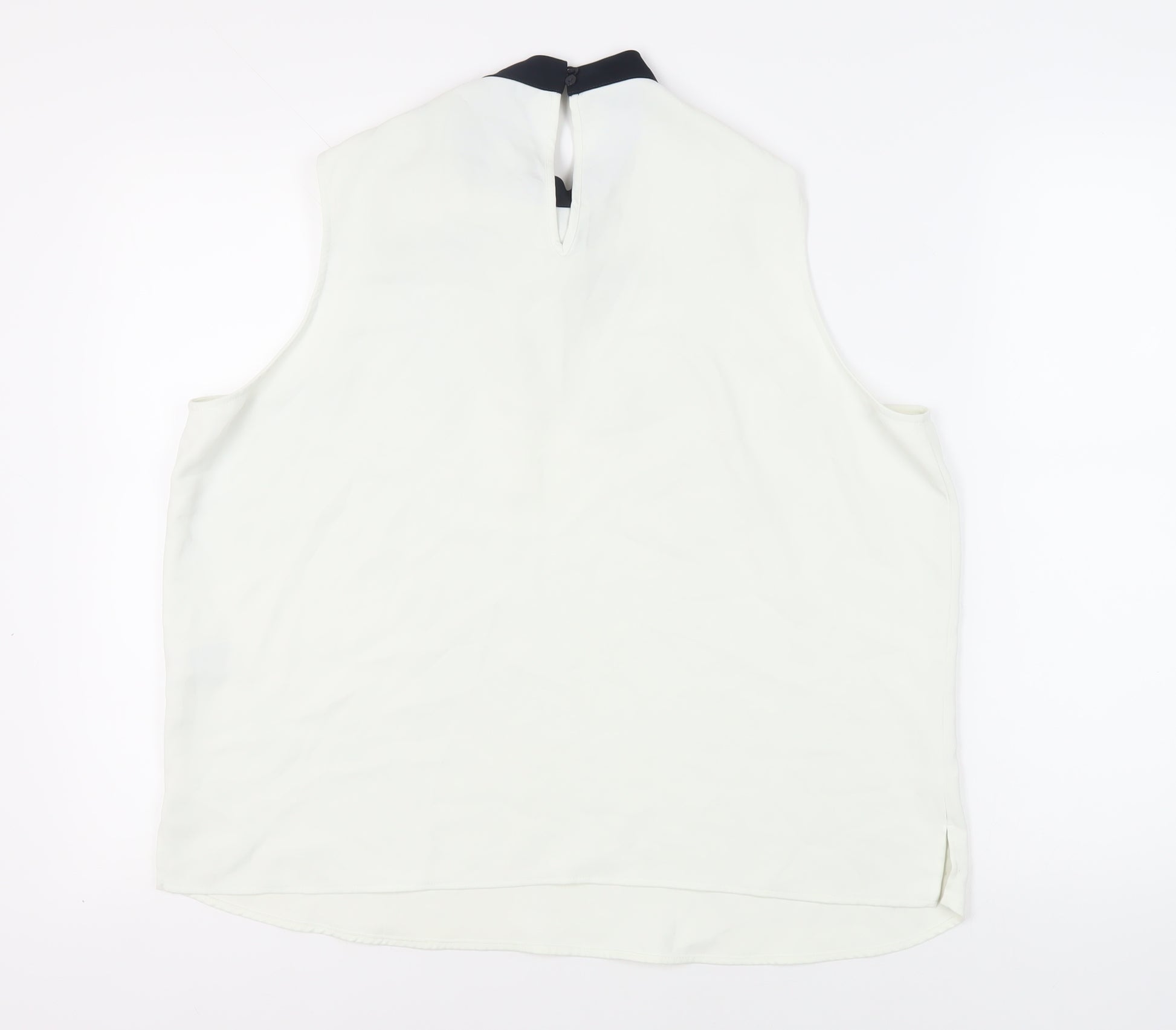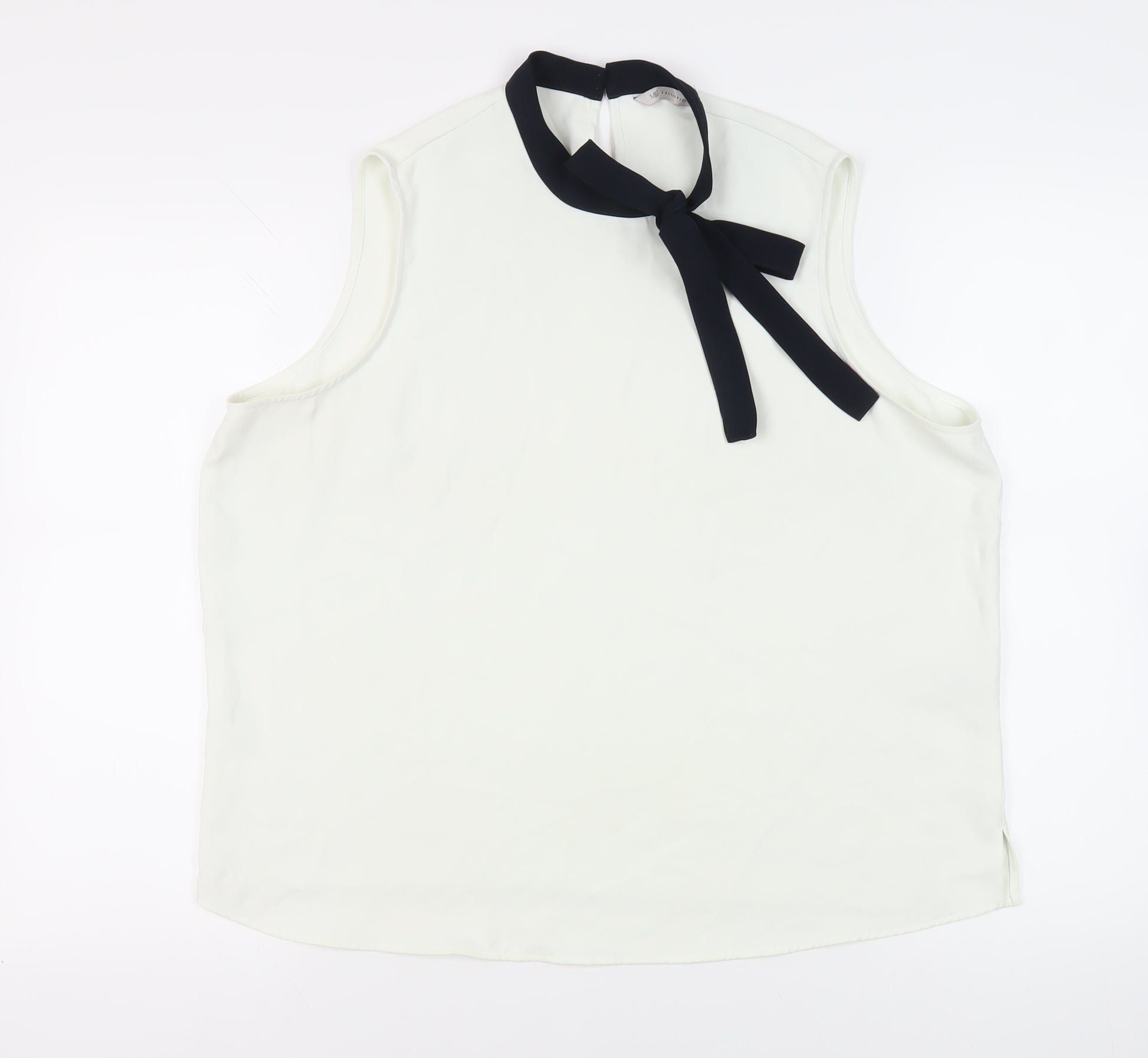 Womens White Polyester Basic Blouse Size 18 Round Neck - Tie Neck