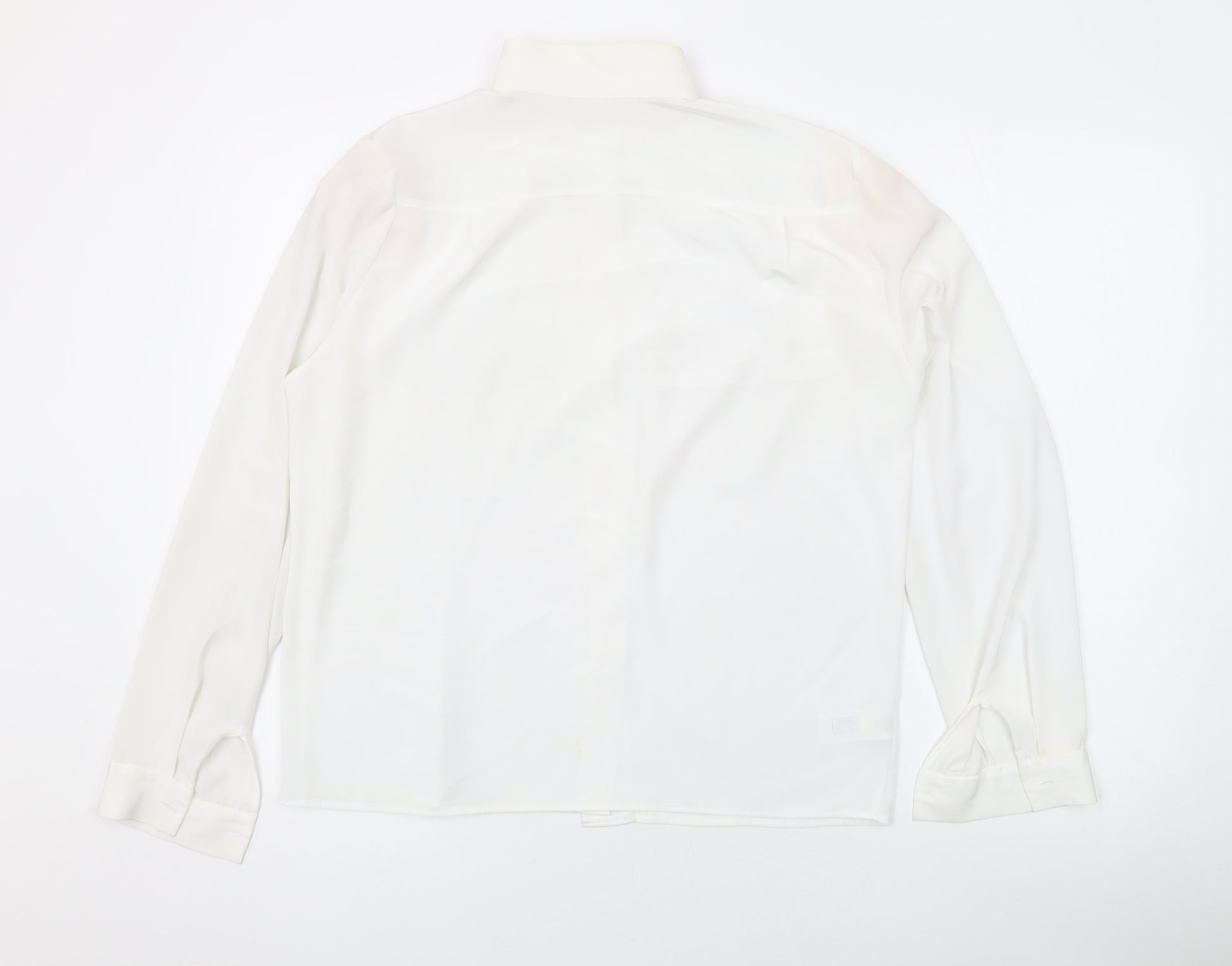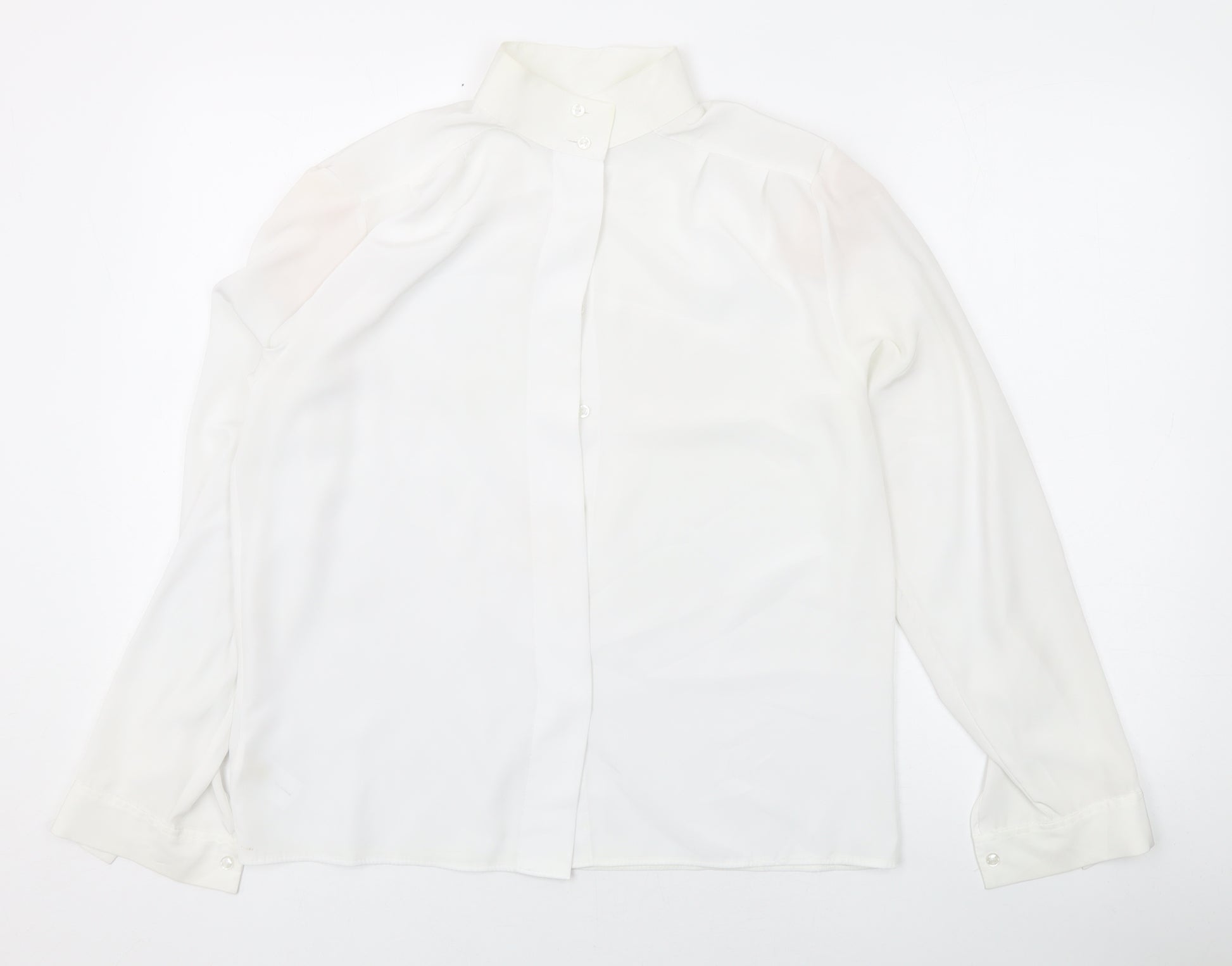 Womens White Polyester Basic Button-Up Size 10 Mock Neck