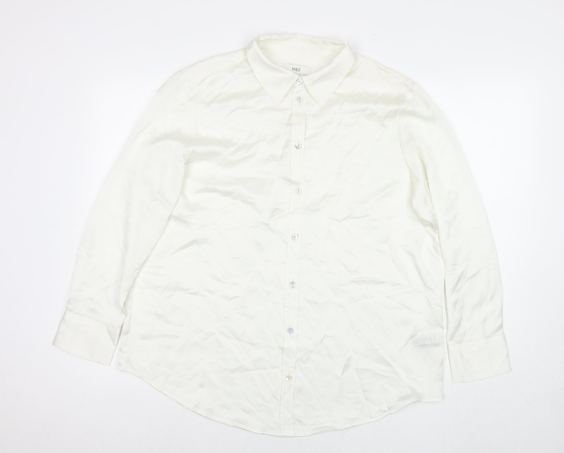 Womens White Polyester Basic Button-Up Size 14 Collared