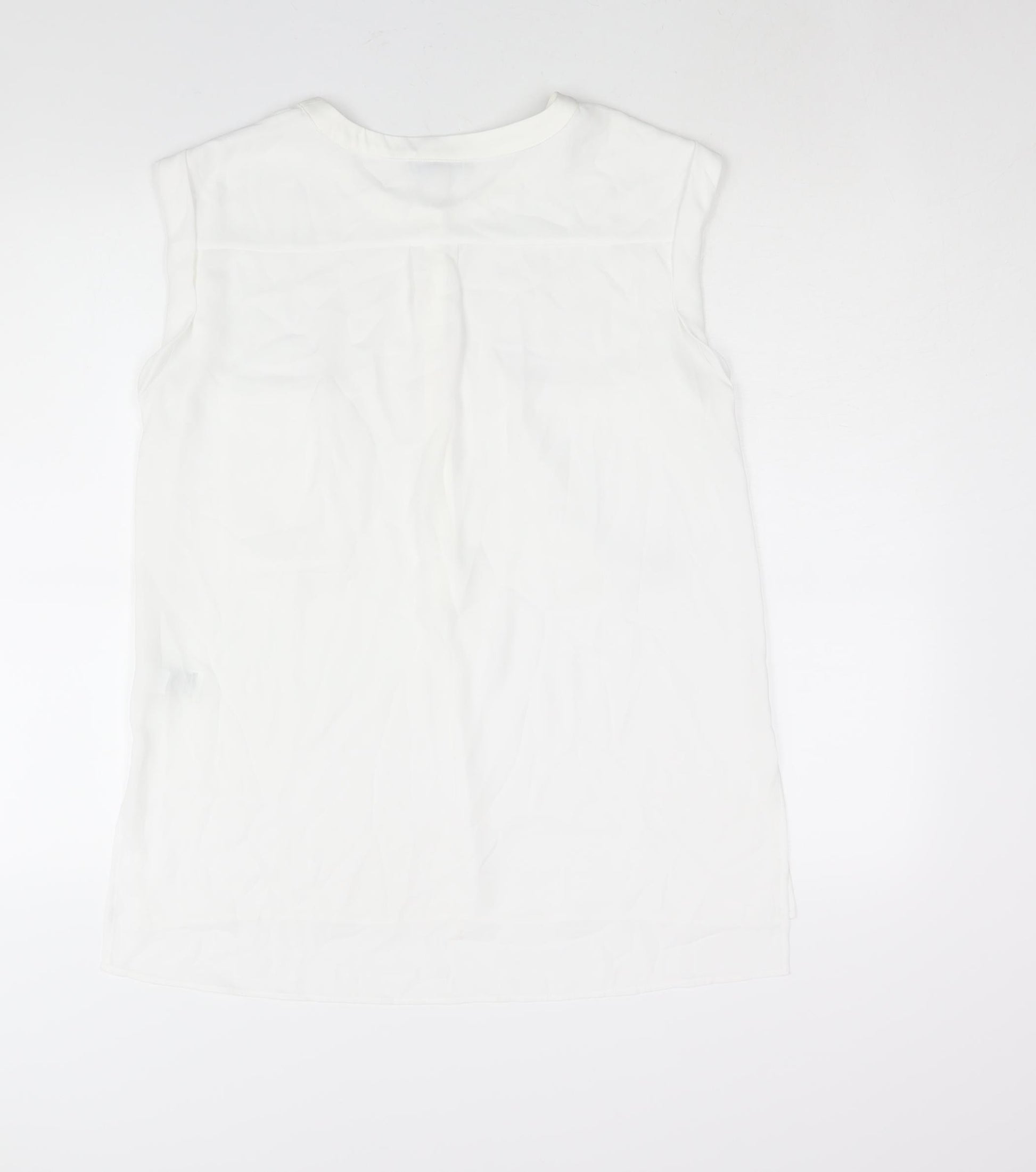 Womens White Polyester Camisole Blouse Size 12 Round Neck