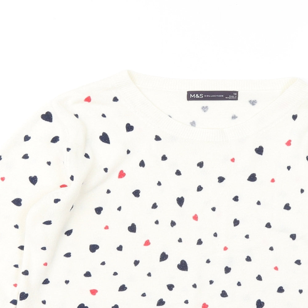 Womens White Round Neck Geometric Acrylic Pullover Jumper Size 10
