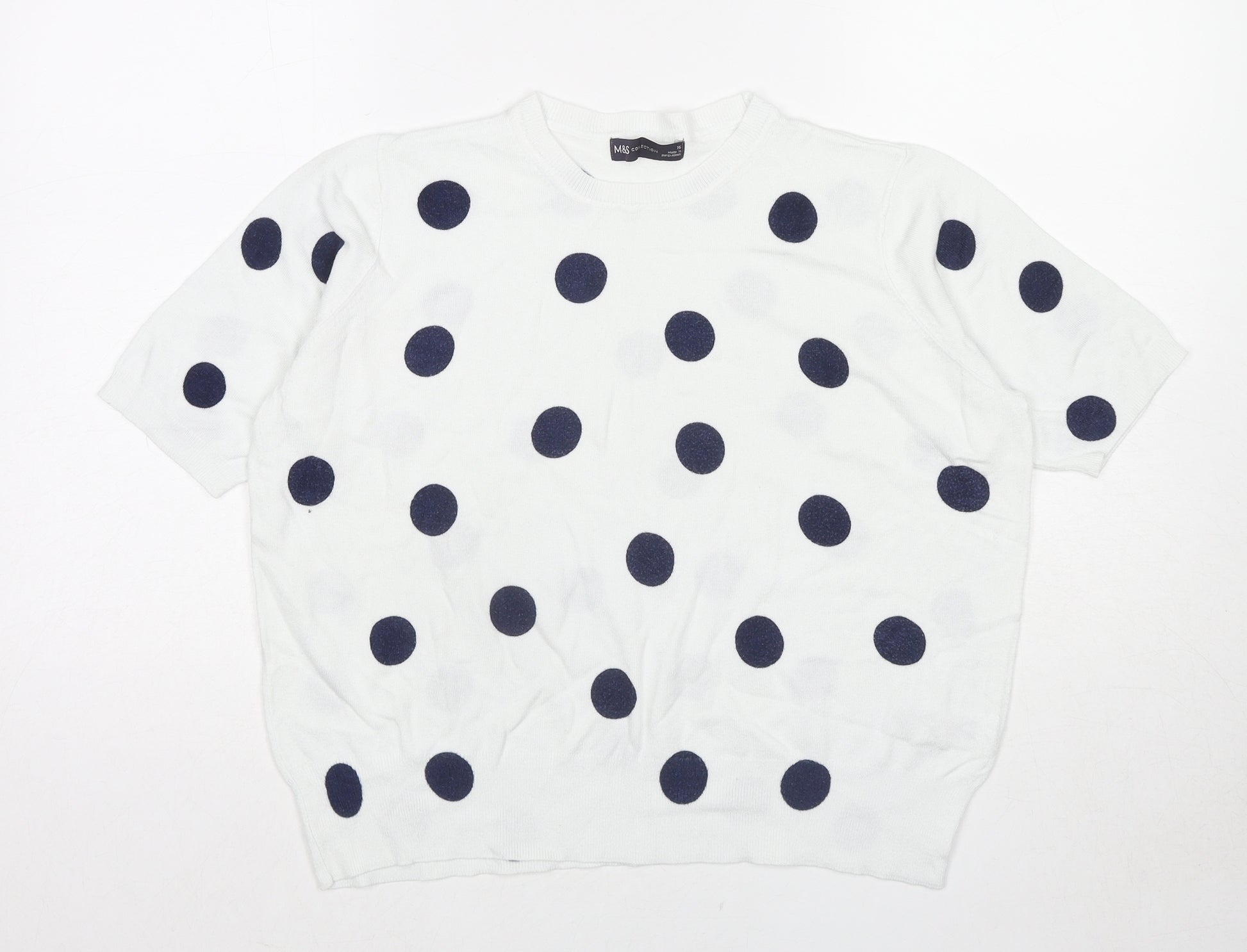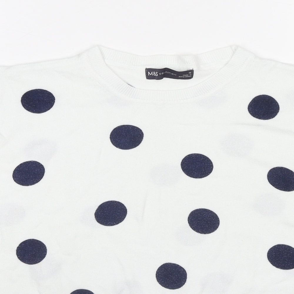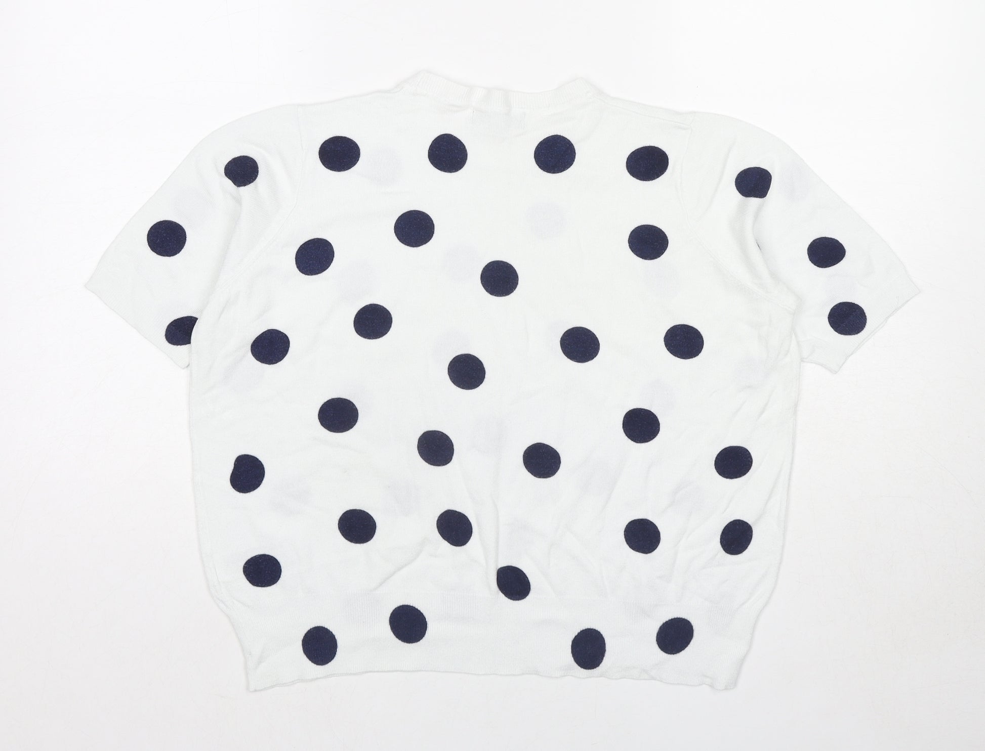 Womens White Round Neck Polka Dot Viscose Pullover Jumper Size 16