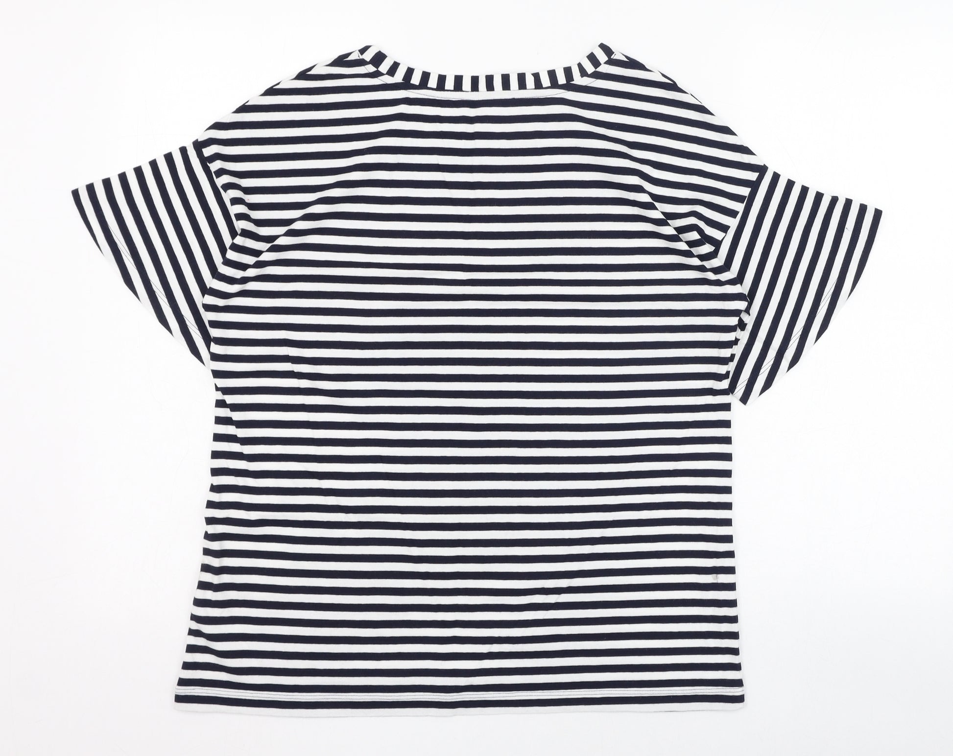 Womens White Striped Cotton Basic T-Shirt Size 12 Round Neck