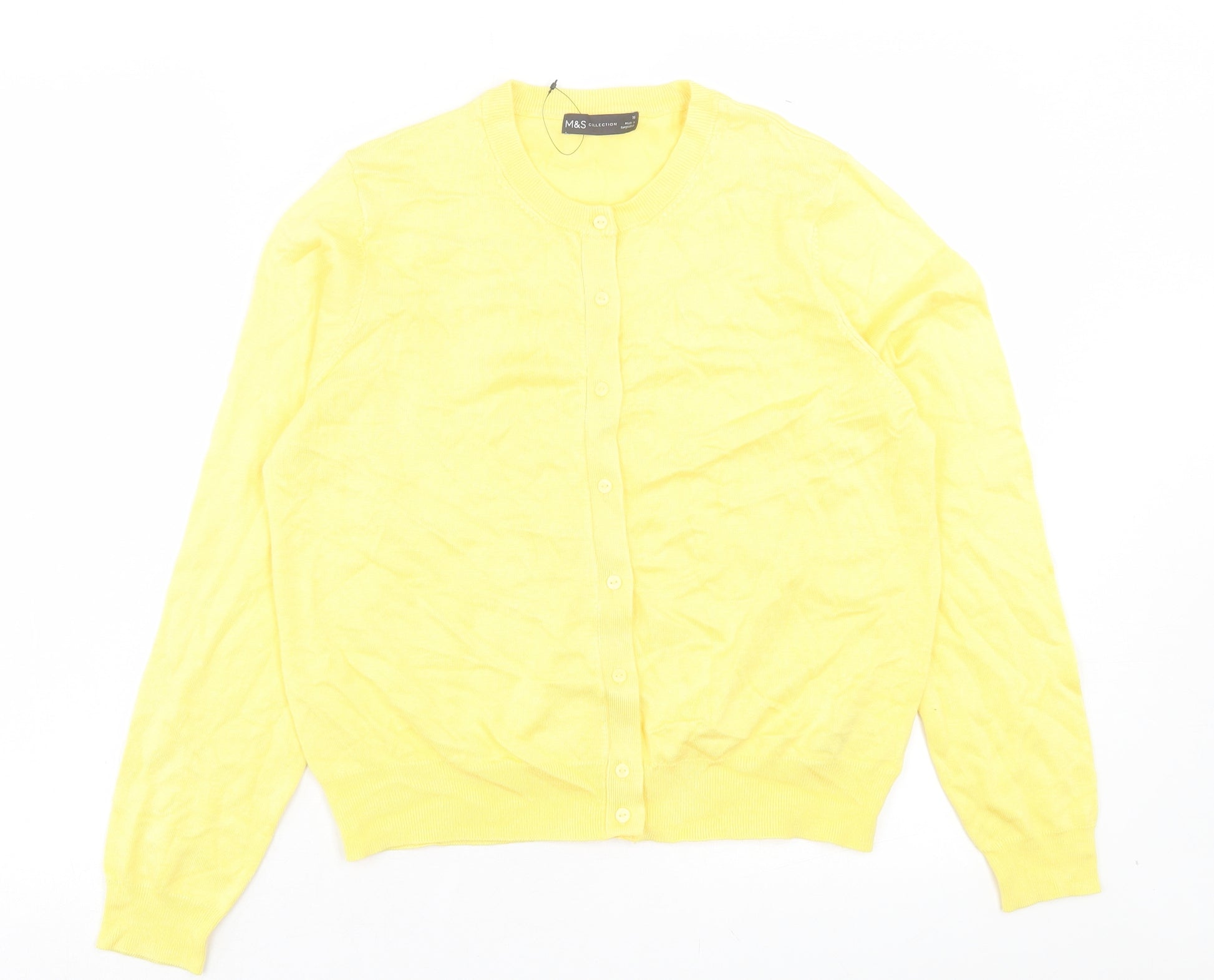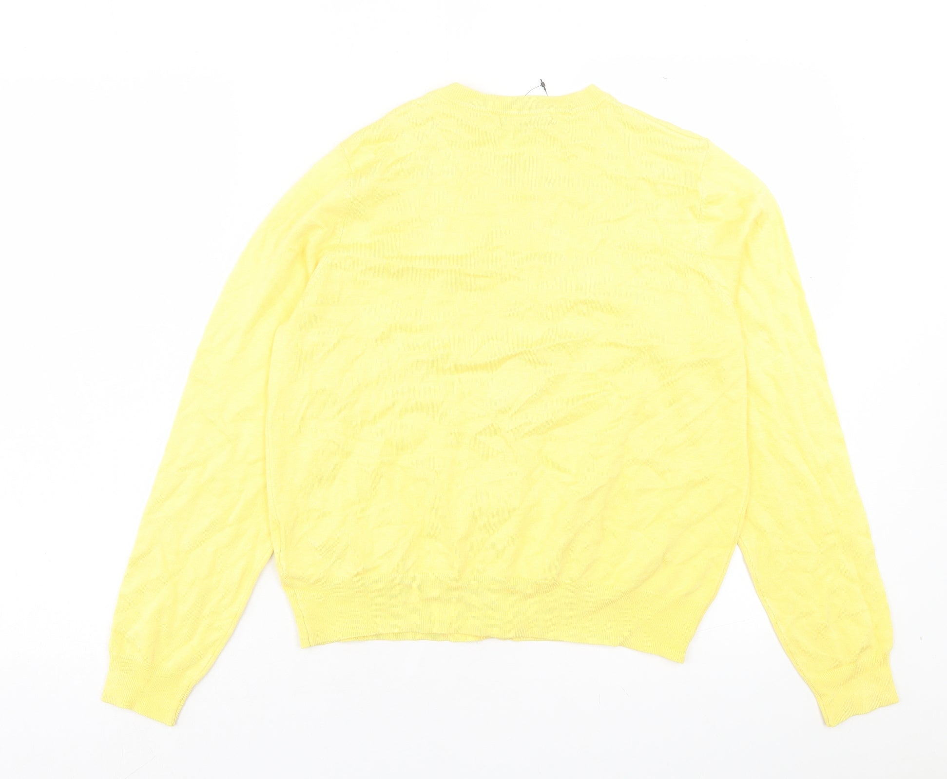 Womens Yellow Crew Neck Viscose Cardigan Jumper Size 16