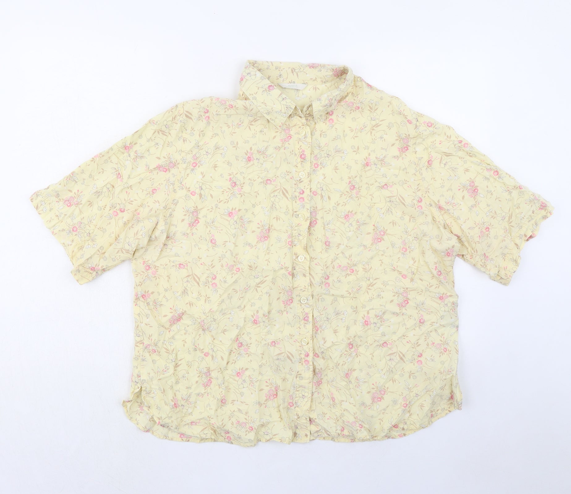 Womens Yellow Floral Lyocell Basic Button-Up Size 22 Collared