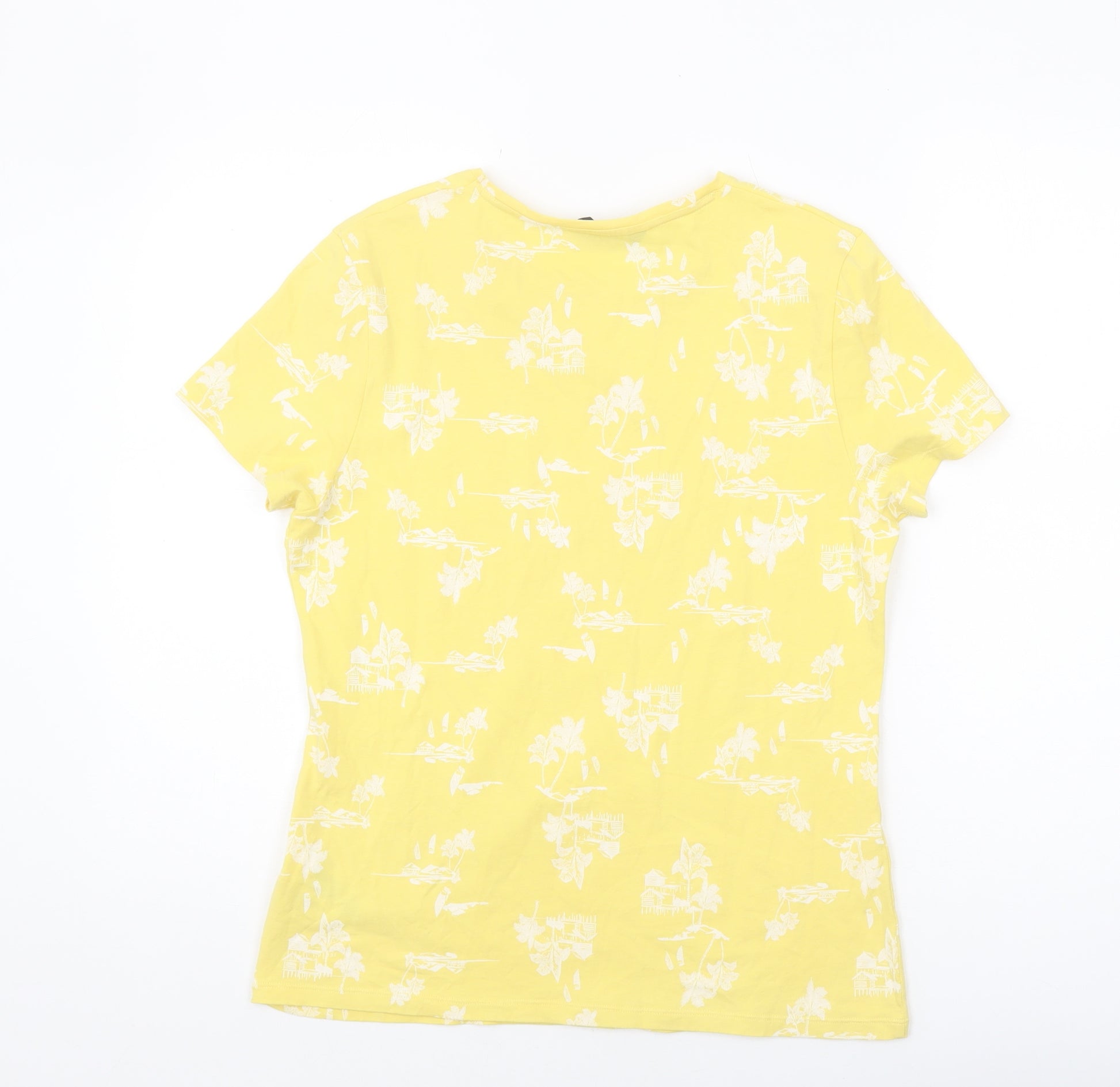 Brighten your wardrobe with this charming Marks and Spencer Women's T-Shirt in a delightful yellow floral print. Perfectly suited for spring and summer occasions, this T-Shirt combines comfort and style effortlessly. Crafted from a soft cotton blend, it ensures a comfortable fit while maintaining its shape thanks to the touch of elastane. The crew neckline and short sleeves provide a classic look, making it a versatile piece that can be paired with jeans, shorts, or skirts for a relaxed yet fashionable outfit. Designed for women, this T-Shirt features an easy pullover closure and is machine washable for convenient care. Its regular fit and floral pattern add a touch of elegance to your casual wear. Whether you're heading to a picnic or a casual day out, this top is your go-to choice. Available in size 14, it promises a flattering fit without compromising on comfort. Enjoy the blend of quality and style with this Marks and Spencer collection T-Shirt. Update your daily essentials with this versatile piece that's sure to become a favourite.